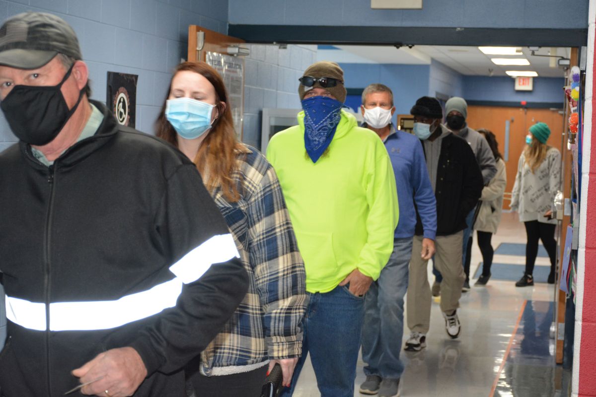 Update, 4:50 p.m.: The line at Oakland Elementary was still running long, even without much social distancing.