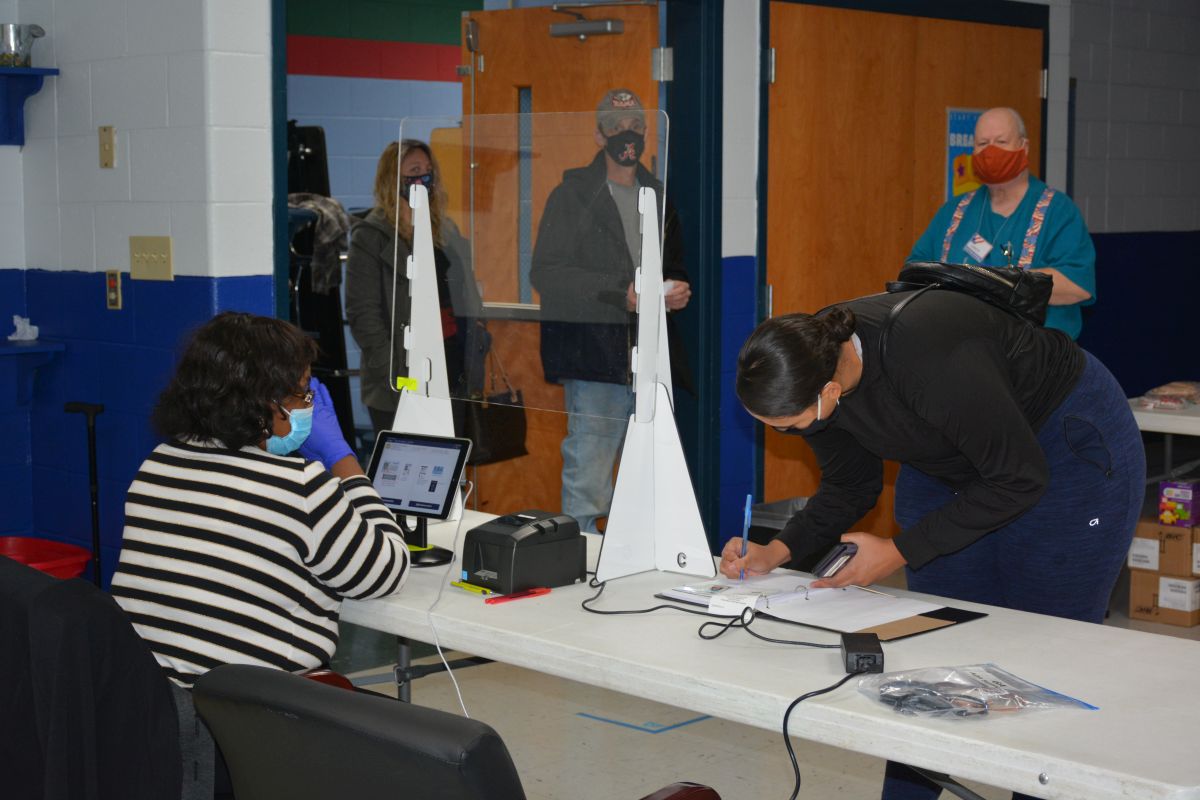 “Parking is an issue out there, so we do have a sheriff’s deputy trying to help folks get situated,” she said. “We are doing our very best and appreciate the patience from the voters of Montgomery County.”