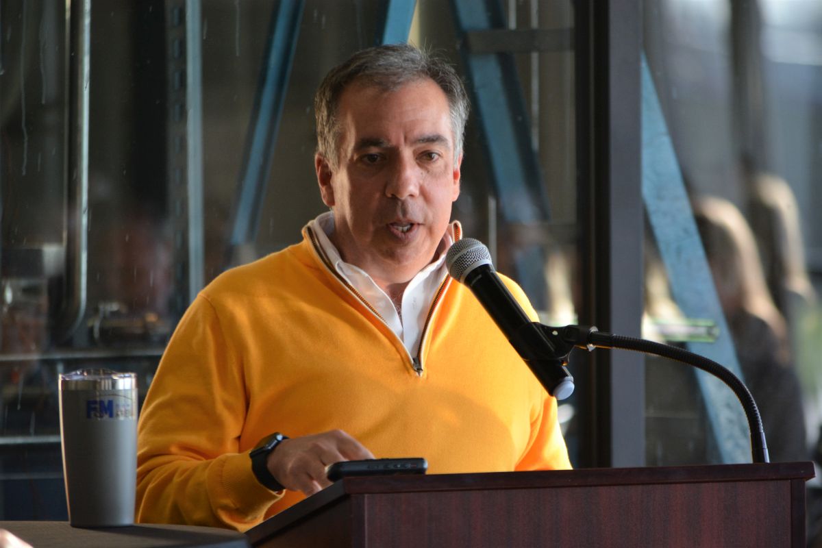 Paul Turner, Chairman of the Clarksville Area Chamber of Commerce speaking at the chamber’s Power Breakfast featuring guest speaker, Nashville Predators CEO, Sean Henry, on Mar. 24, 2022. (Lee Erwin).