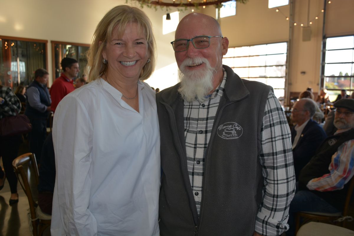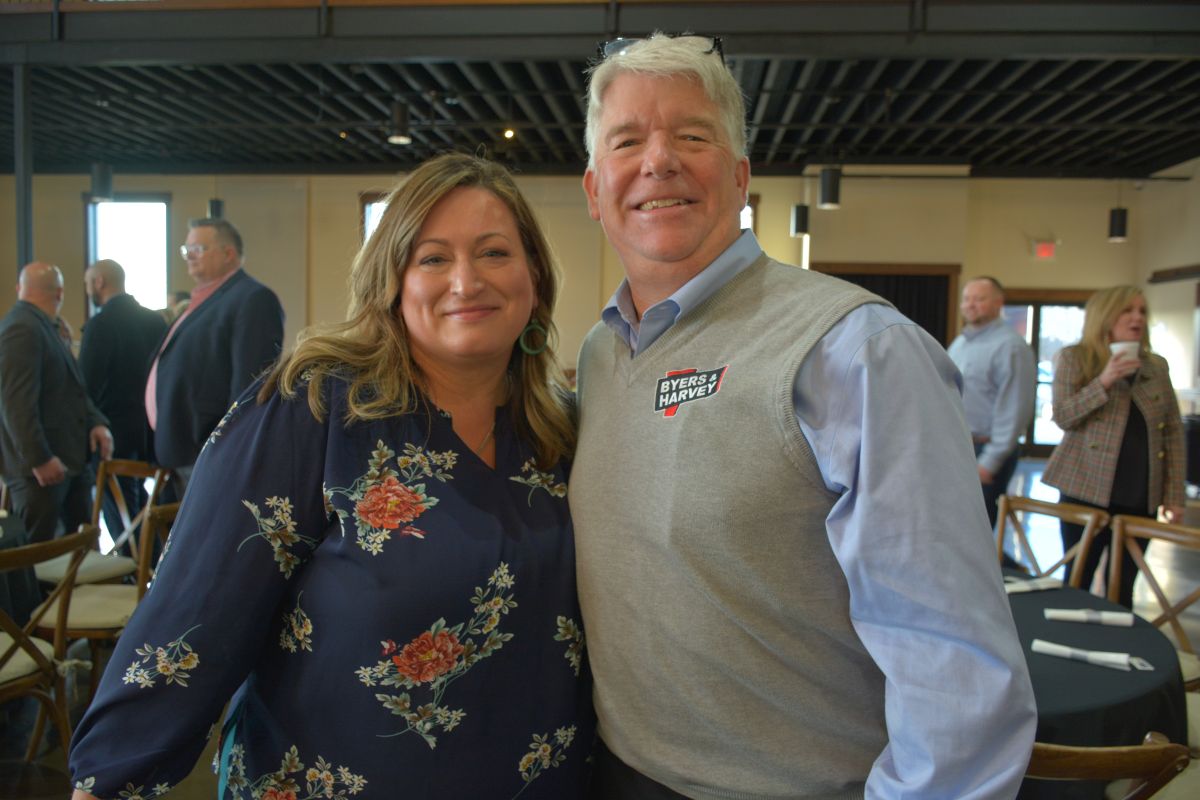 Mark Kelly and Katie Gambill at the Clarksville Area Chamber of Commerce Power Breakfast featuring guest speaker, Nashville Predators CEO, Sean Henry, on Mar. 24, 2022. (Lee Erwin).