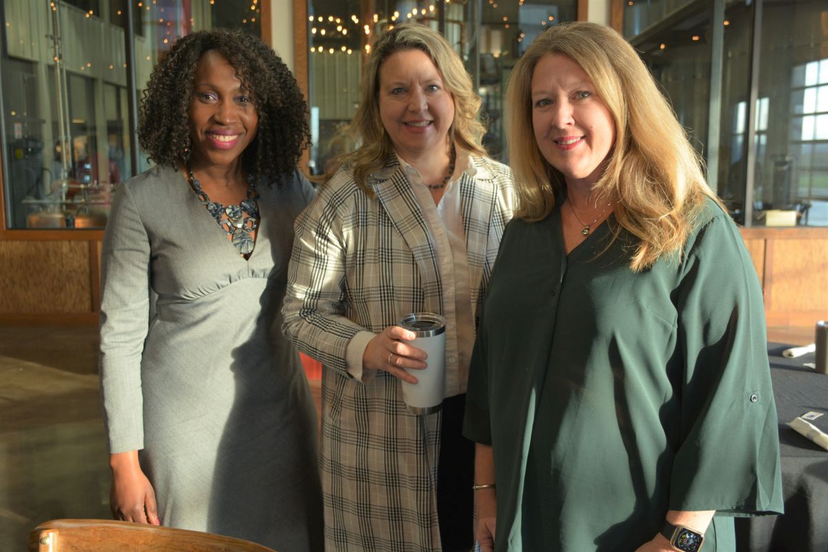 Guests and featured speaker, CEO of the Nashville Predators, Sean Henry (center), at the Clarksville Area Chamber of Commerce Power Breakfast, on Mar. 24, 2022. (Lee Erwin).