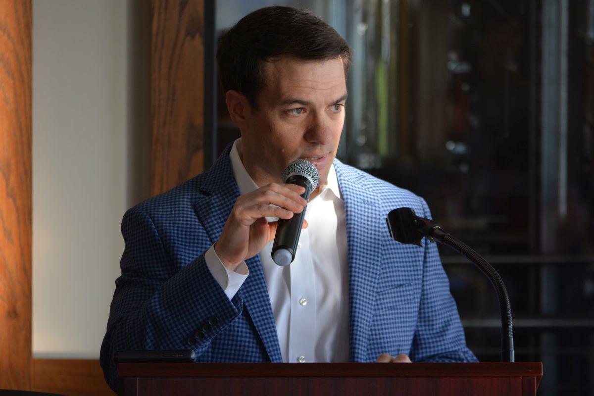 Guest speaker Sean Henry, Nashville Predators CEO, at the Clarksville Area Chamber of Commerce Power Breakfast, on Mar. 24, 2022. (Lee Erwin).