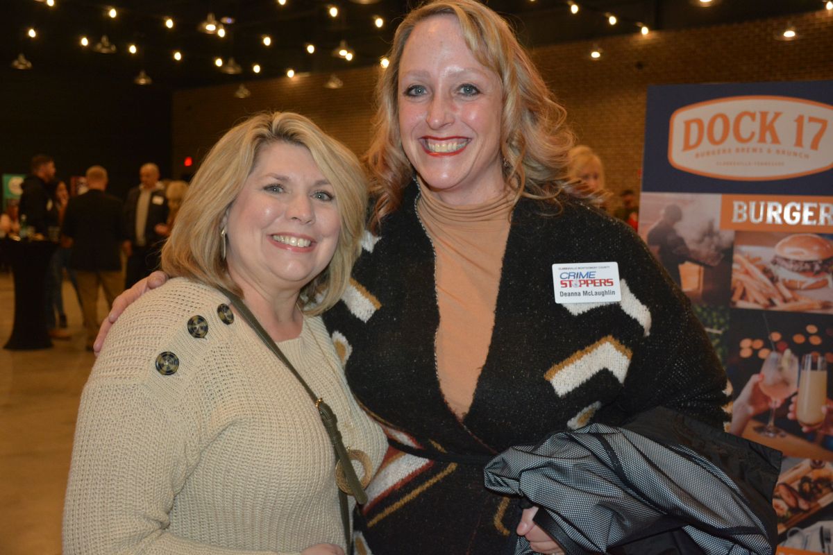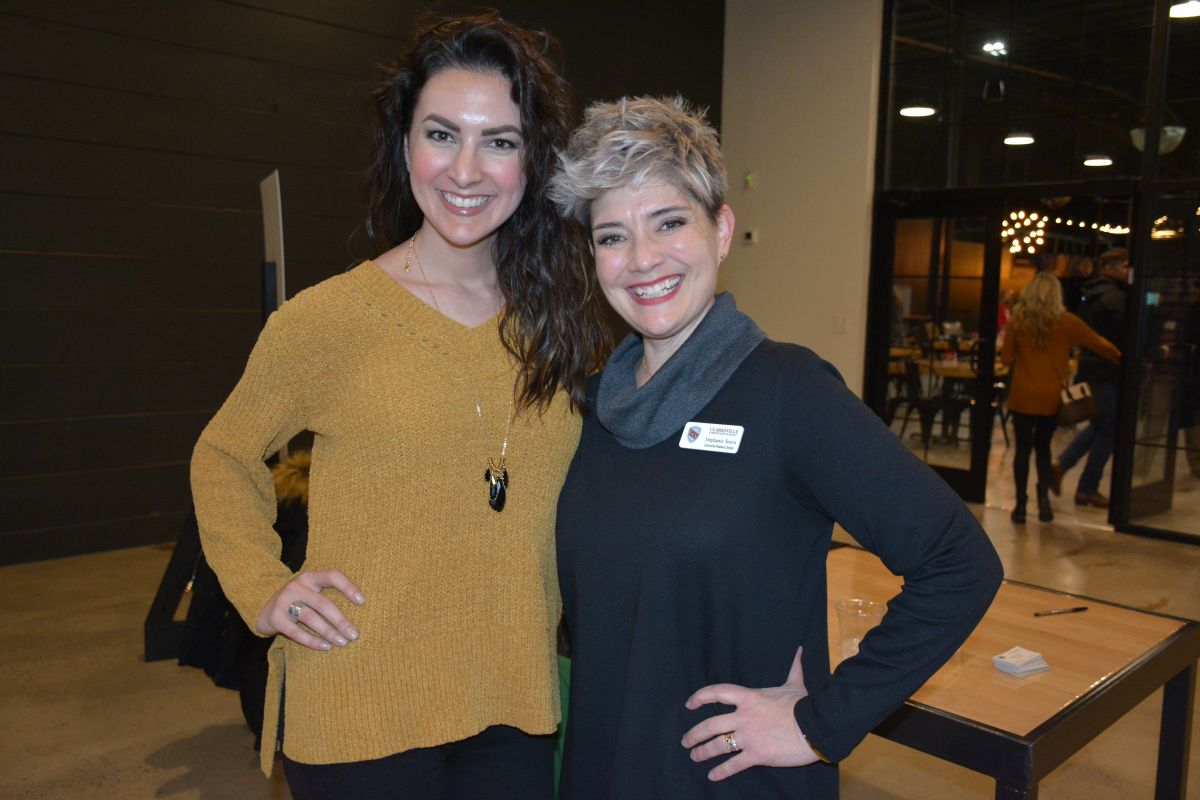 Erin Yow and Stephanie Travis at the Clarksville Area Chamber of Commerce Business After Hours hosted by Project 2231 at the Madison Room, on Jan. 20, 2022. (Lee Erwin)