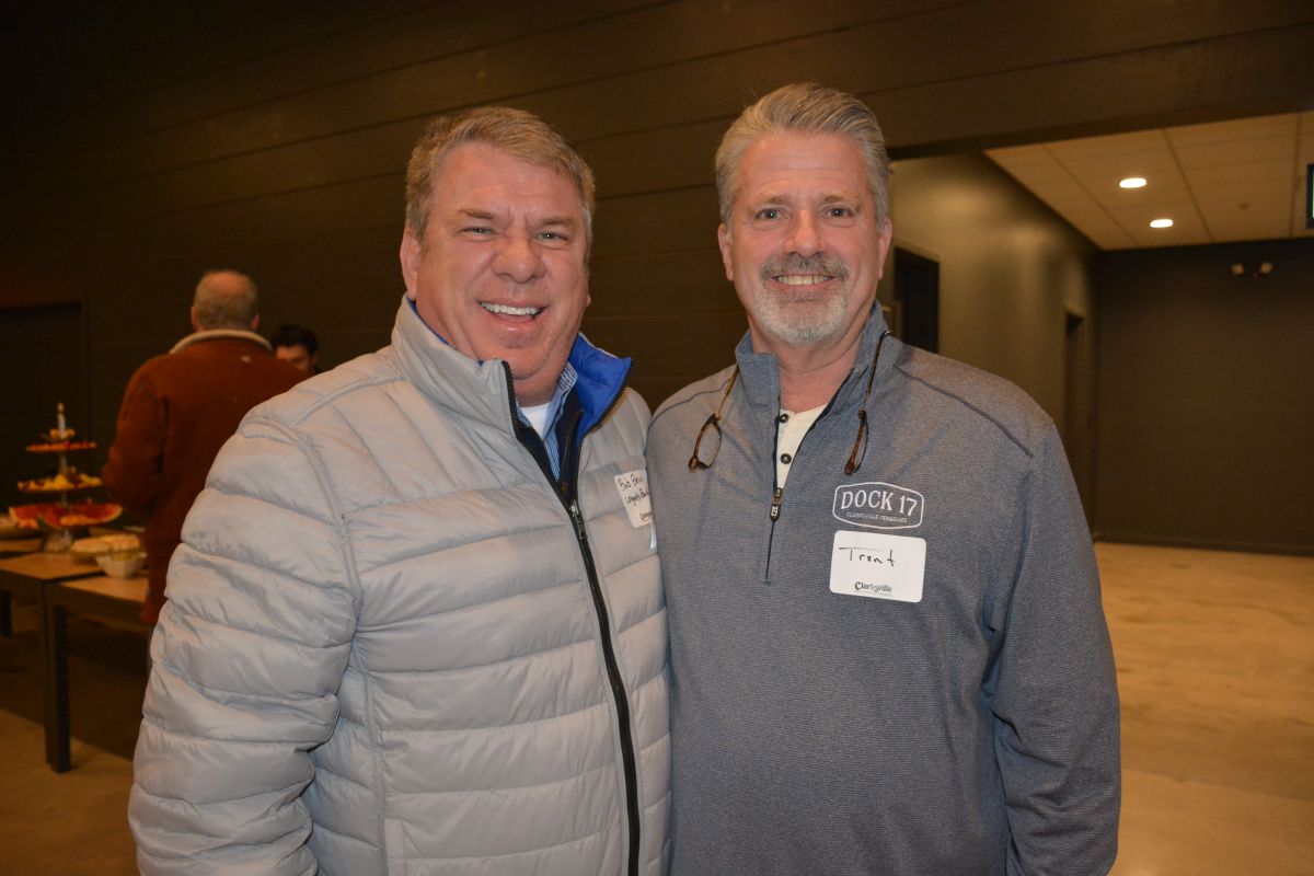 Bob Belvin and Trent Knott at the Clarksville Area Chamber of Commerce Business After Hours hosted by Project 2231 at the Madison Room, on Jan. 20, 2022. (Lee Erwin)