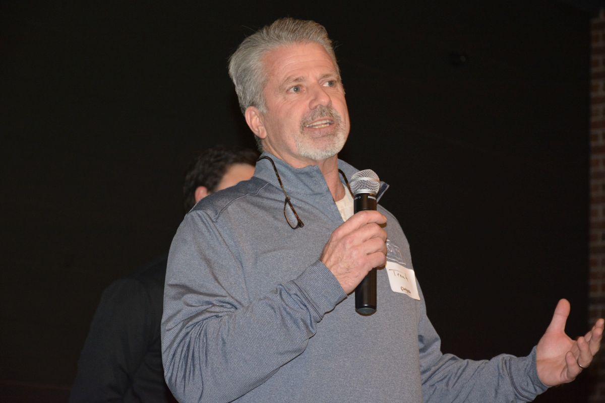 Trent Knott with Project 2231, speaks to the guests at the Clarksville Area Chamber of Commerce Business After Hours at the Madison Room, on Jan. 20, 2022. (Lee Erwin)