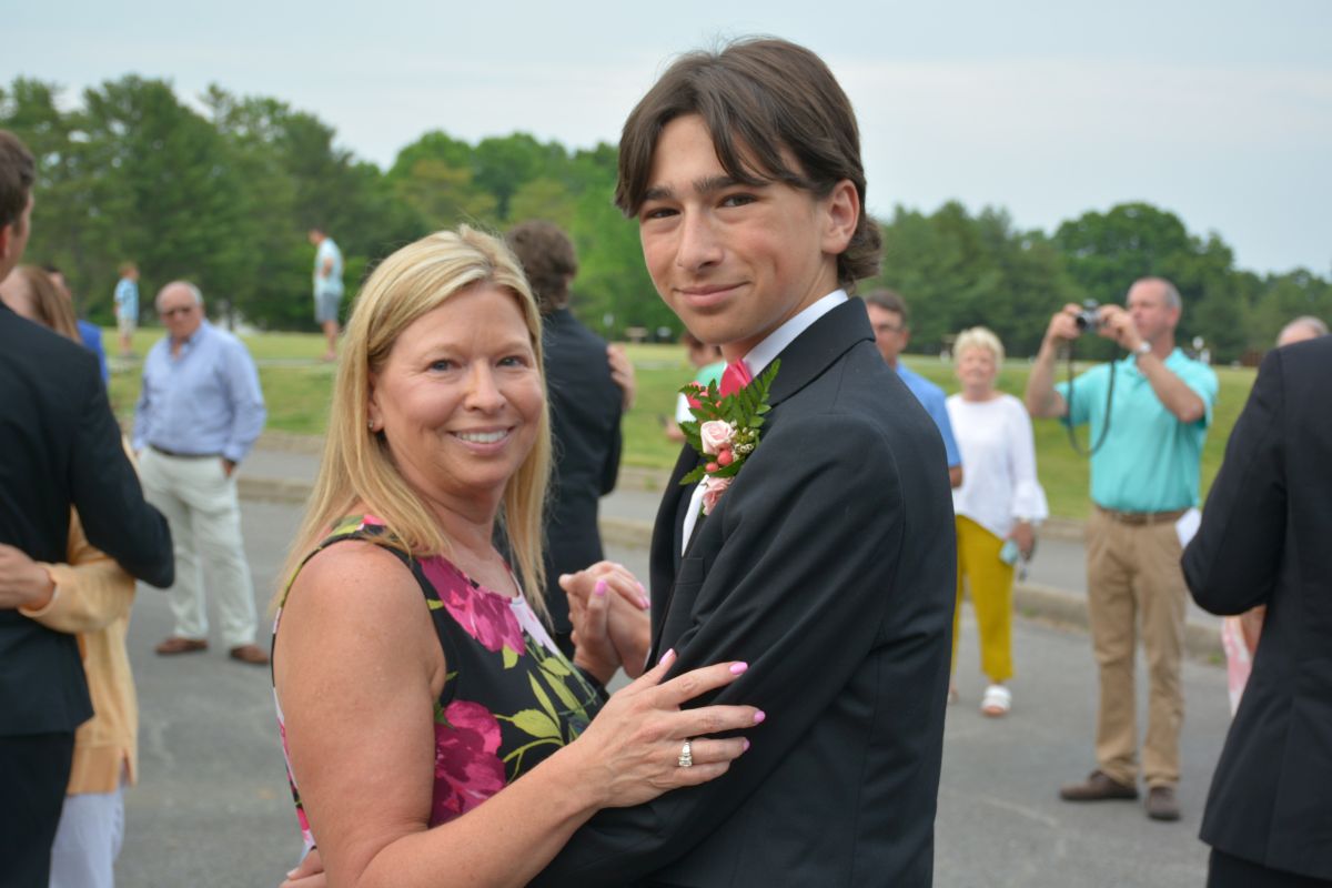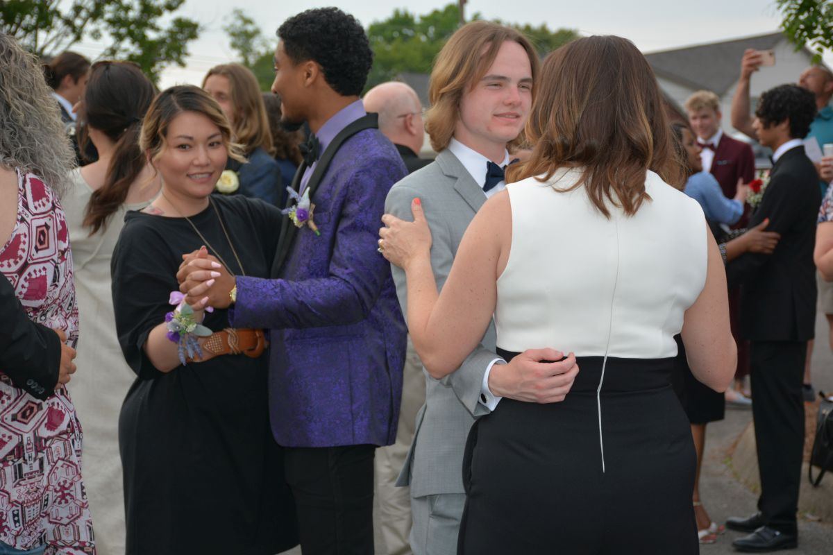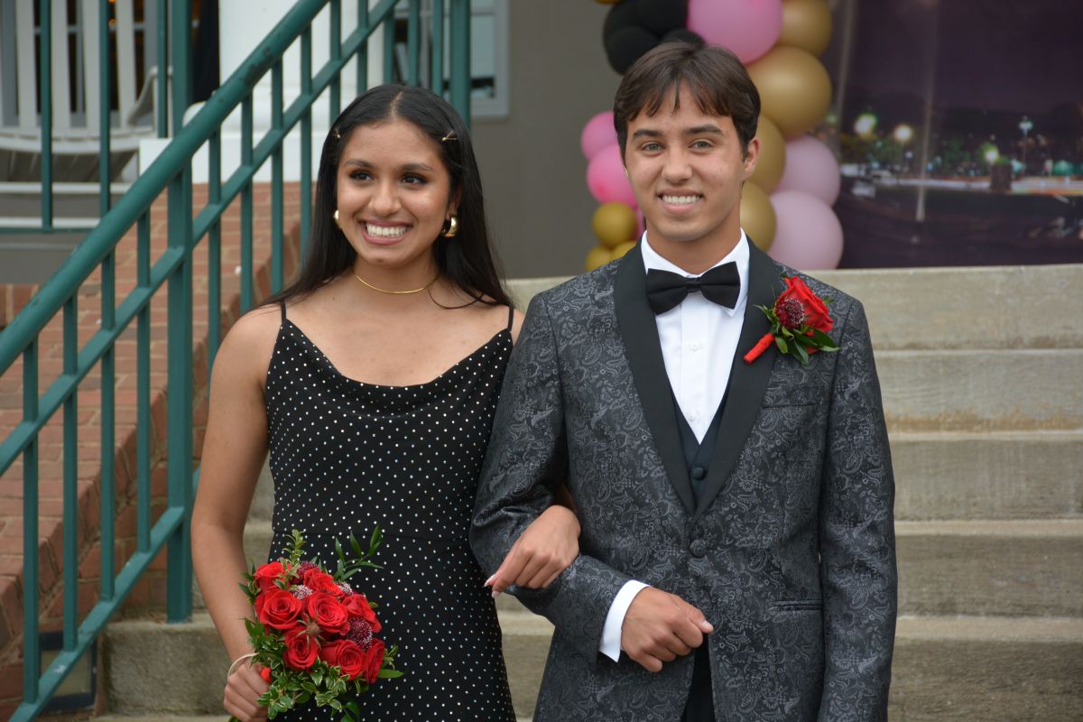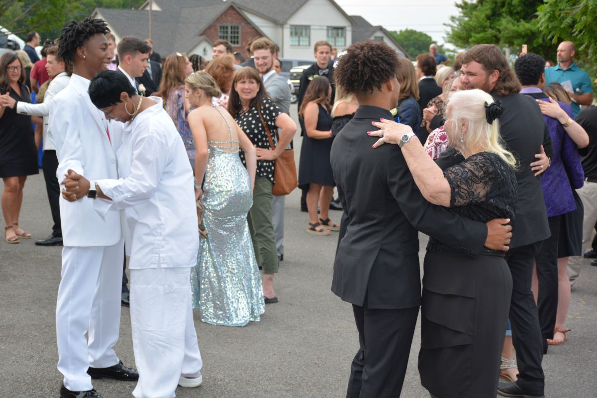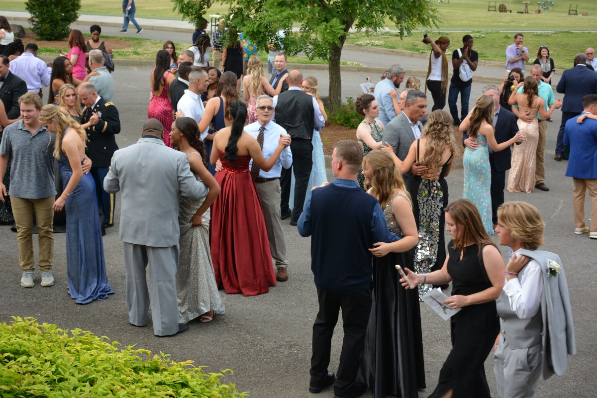A total of 103 junior and senior students made their entrance with the Grand March, followed by a father-daughter and mother-son dance outside the Country Club. After the family members departed, the students made their way inside for dinner, an evening of dancing, and crowning of prom royalty.