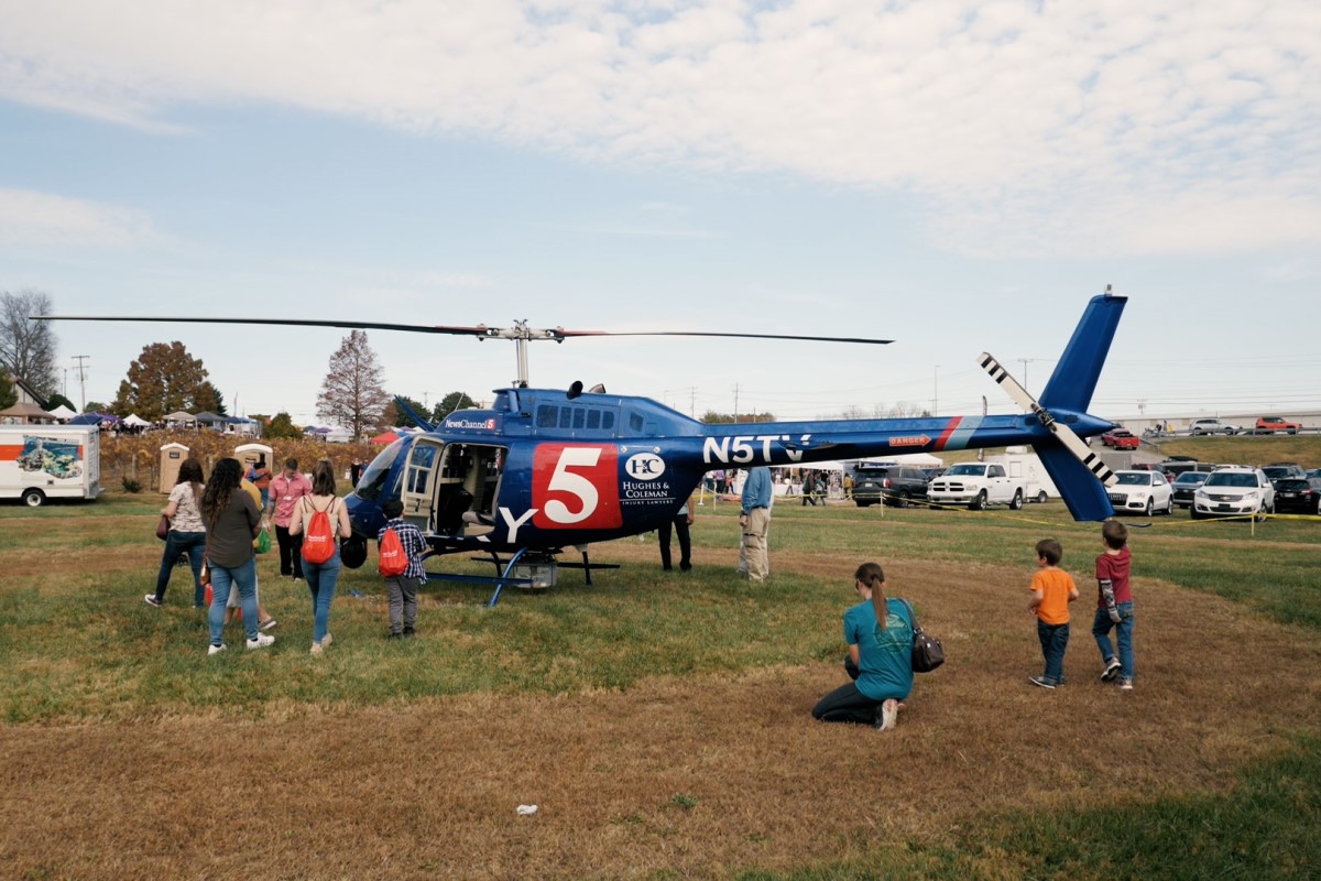 The Sky5 NewsChannel 5 helicopter drops in on the Christmas-themed Q108 Clarksville Vintage Fair at Beachaven Vineyards & Winery on Nov. 5, 2022. (Jim Key)
