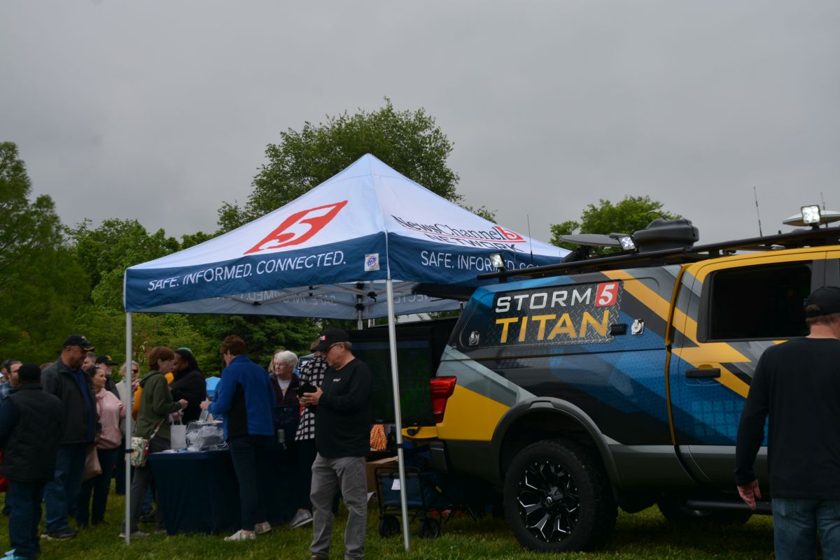 Lelan Statom, right, with NewsChannel 5 at the spring Q108 Clarksville Vintage Fair on Saturday, May 7, 2022. (Angela Peterson)