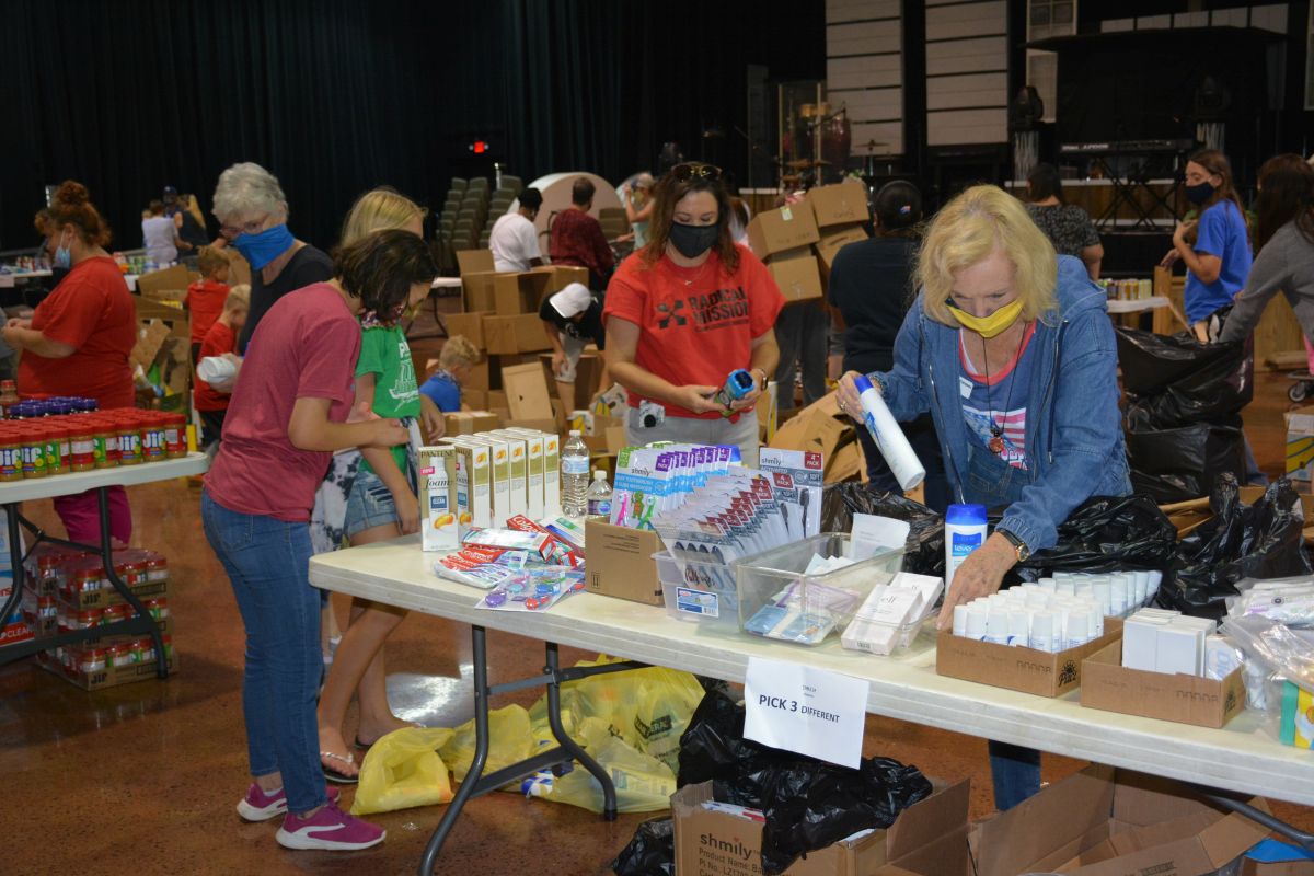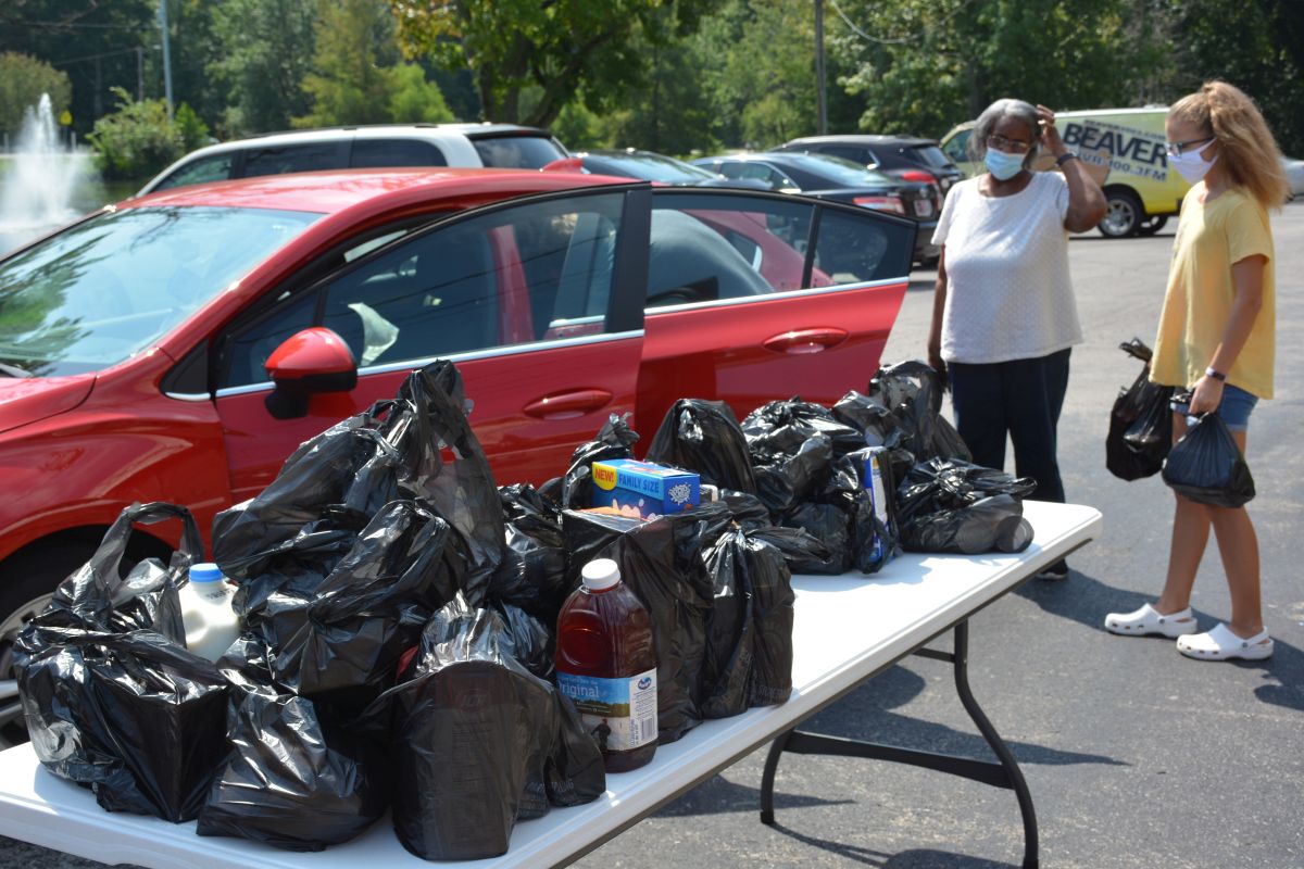 Instead of receiving prepared boxes of food, each individual or family was allowed to go inside the church and pick out the food they wanted, which was laid out on tables and the bagged food was loaded into their vehicles.