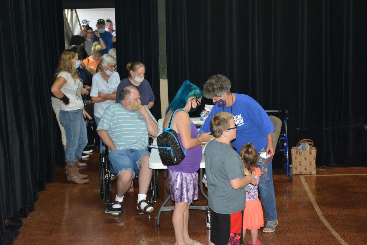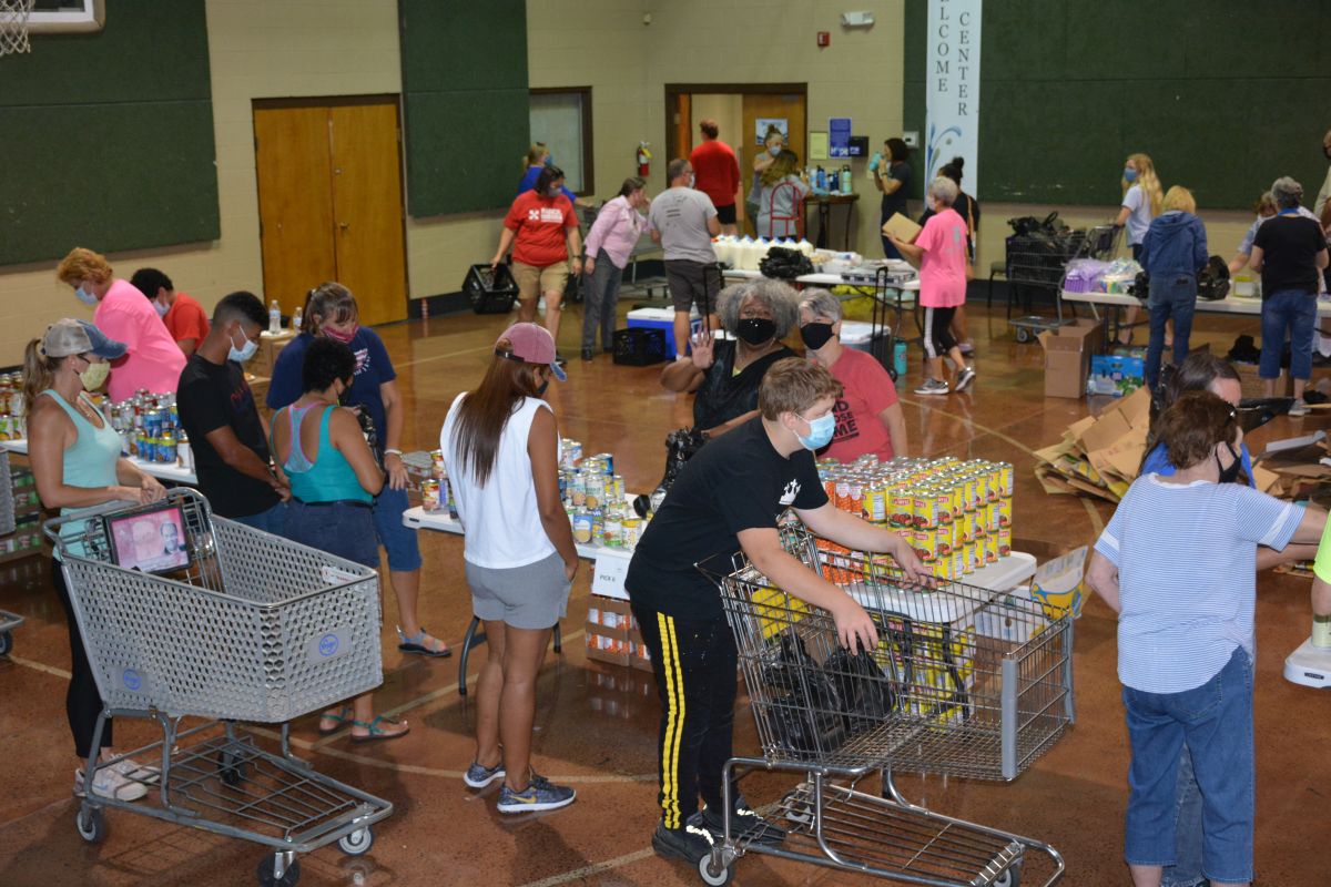 Organizer Jon Vaughn said around 80 volunteers helped 195 households, which included a total of 671 people receiving close to 10,000 pounds of food to help fill their pantries. The wearing of masks was required and practicing of social distancing was encouraged.