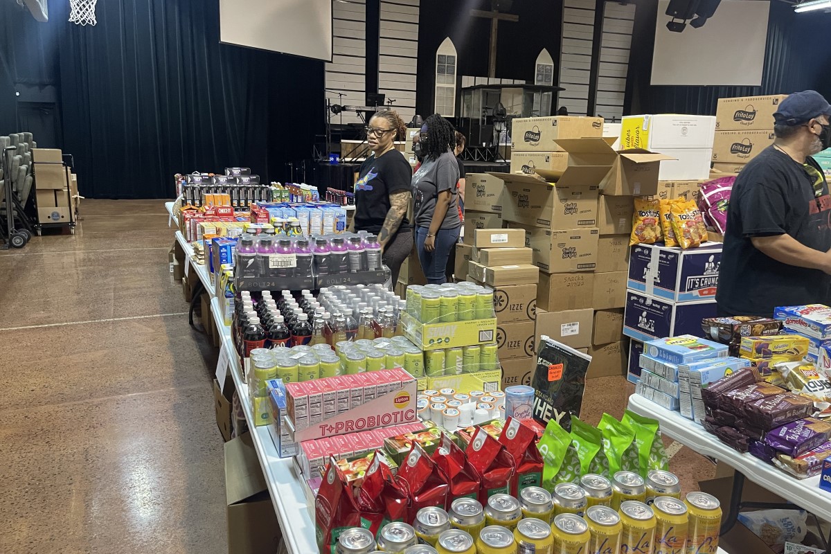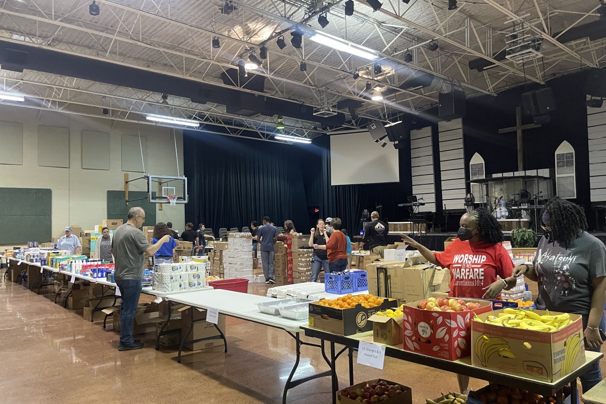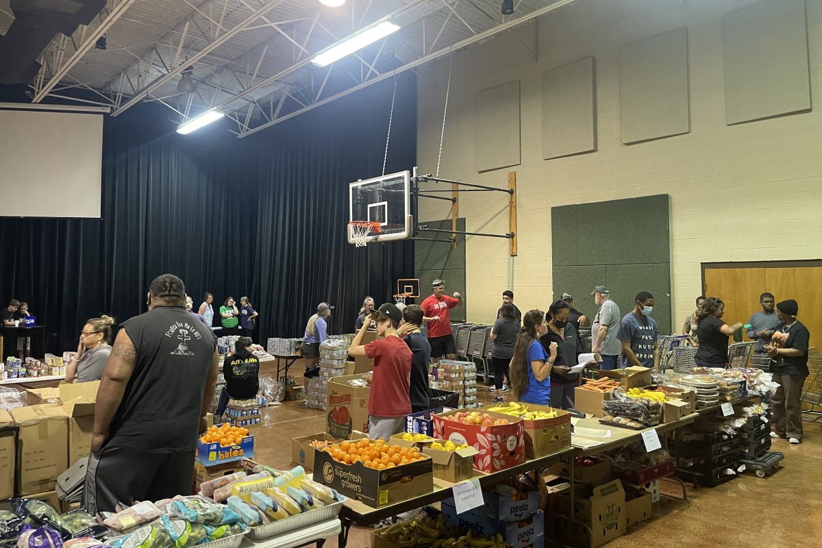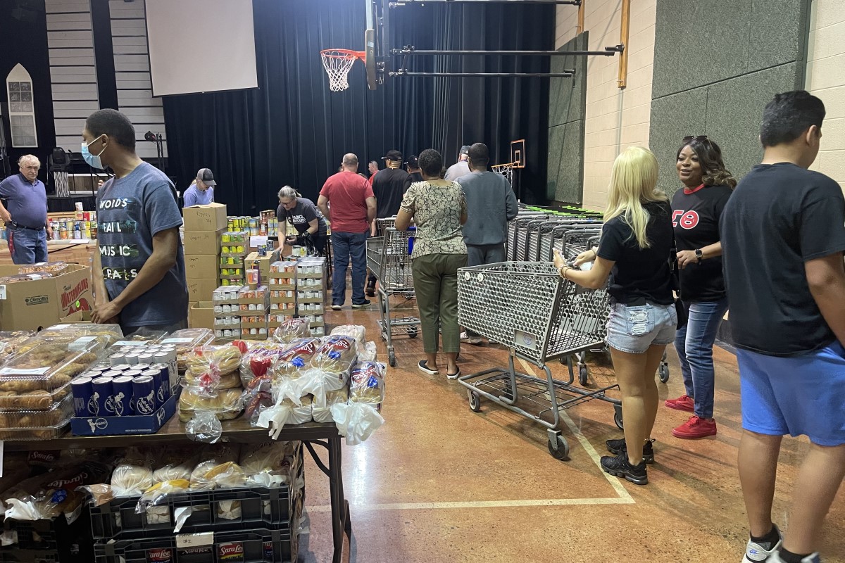 On Saturday morning, people formed a line all the way around the Community of Hope, First Nazarene Church to take part in Radical Mission's free grocery shopping experience.