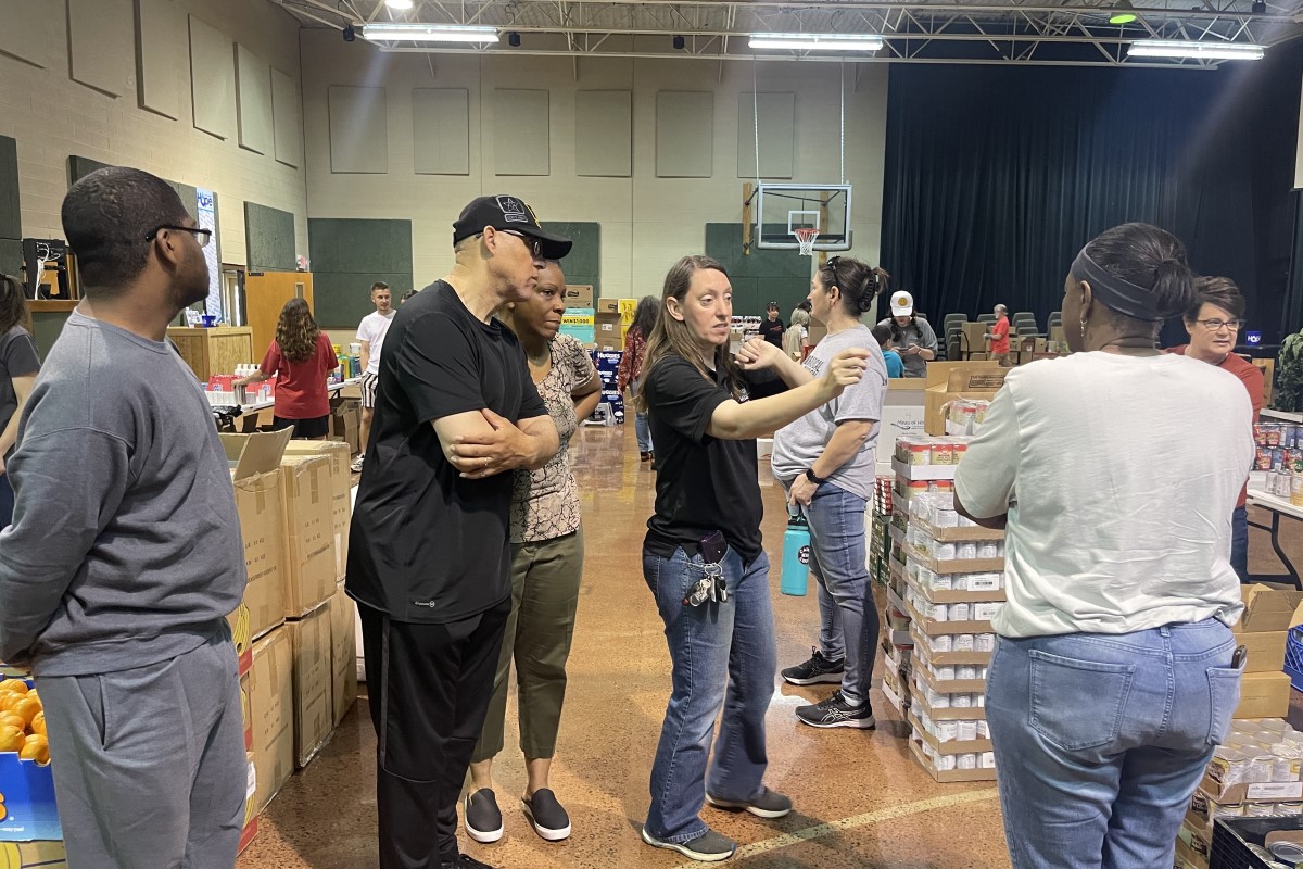 Carrie Wheeler assisting volunteers at the Radical Mission grocery experience on April 23, 2022. (Angela Peterson)
