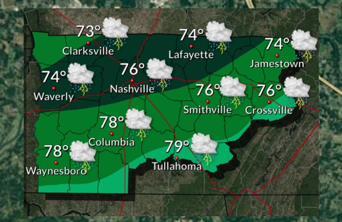CLARKSVILLE, Tenn. (CLARKSVILLENOW) – Rain will continue at least until mid-week when a much stronger cold front comes through around Wednesday and clears out all this moisture.