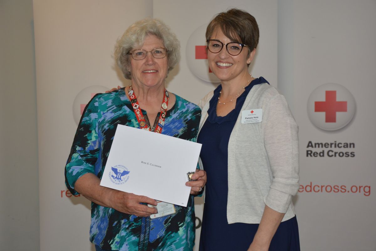 Red Cross Volunteer Rose E. Caltrider with Executive Director Pamela Holz, at the Tennessee River Chapter of the American Red Cross Volunteer Appreciation Luncheon on April 30, 2022. (Lee Erwin)
