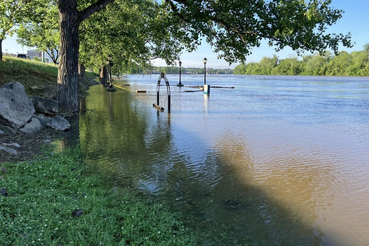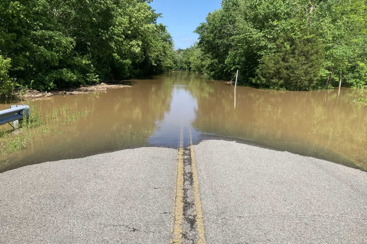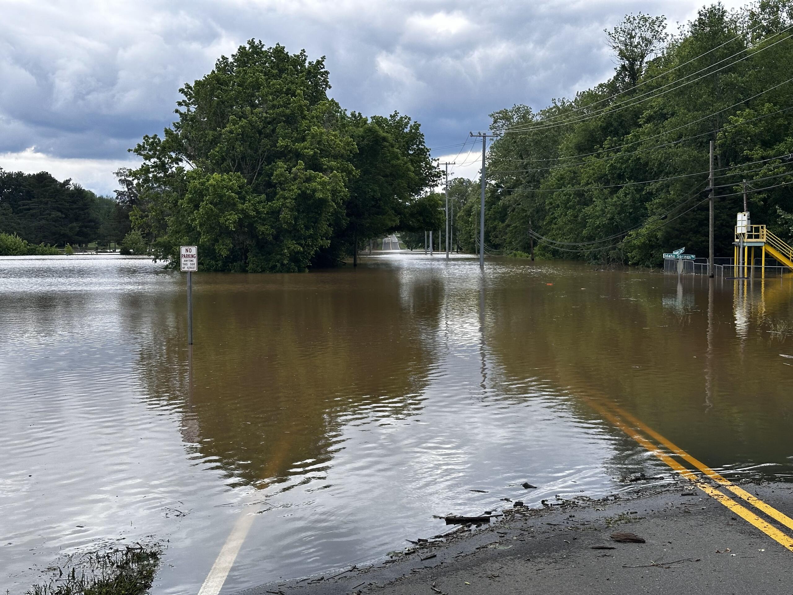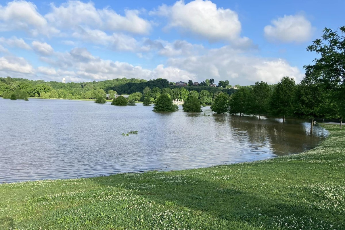 At Dunbar Cave State Park, floodwaters reached the edge of Dunbar Cave Road on one side and spilled over the Swan Lake embankment on the other.