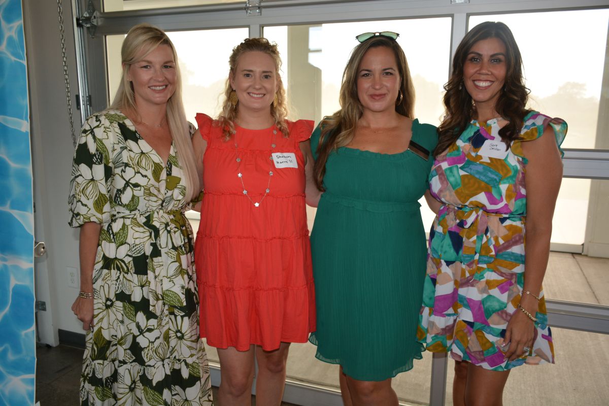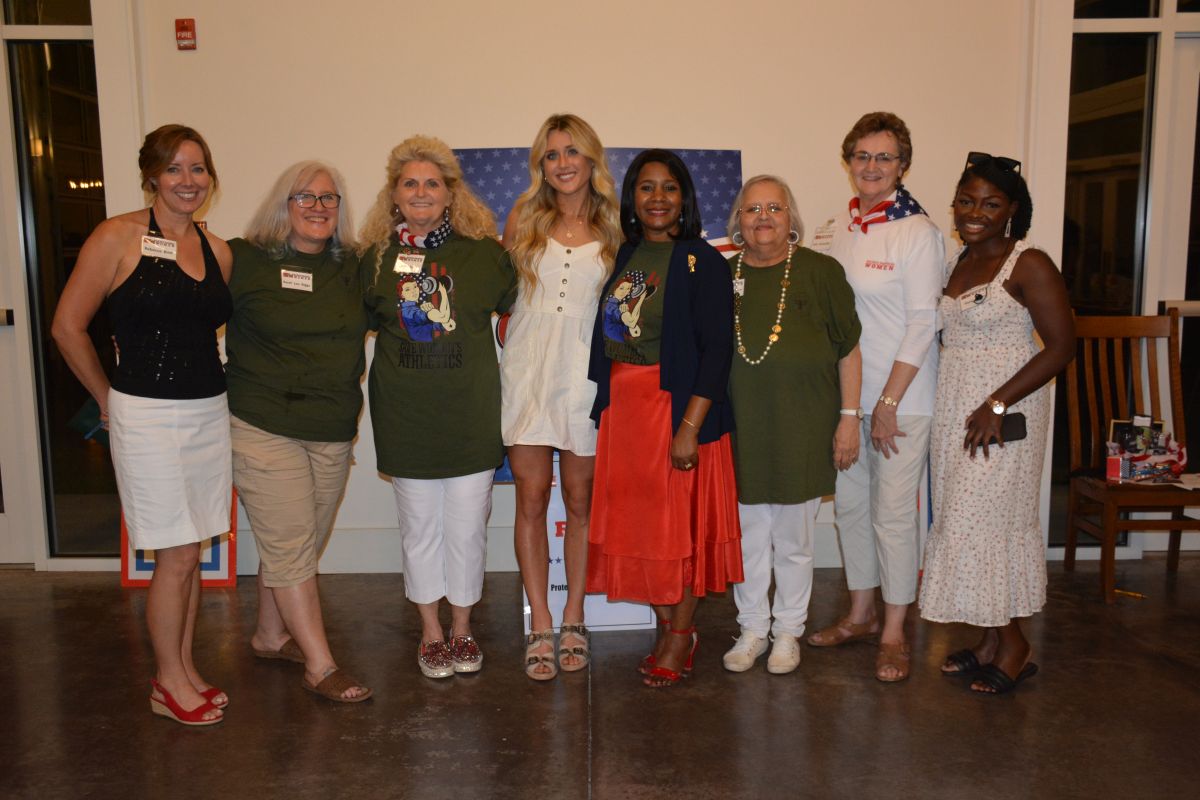 Members of the Red River Republican Women pose for a photo with Riley Gaines Barker at the organization’s Annual Wine Tasting Fundraiser at Ruby Cora on Jul. 28, 2023. (Lee Erwin)