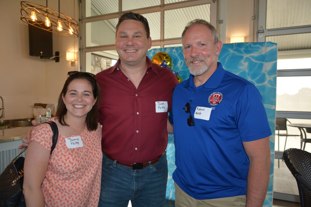 Jamie Peltz, Josh Peltz, & District Attorney Robert Nash Olivia at the Red River Republican Women’s Annual Wine Tasting Fundraiser at Ruby Cora on Jul. 28, 2023. (Lee Erwin)