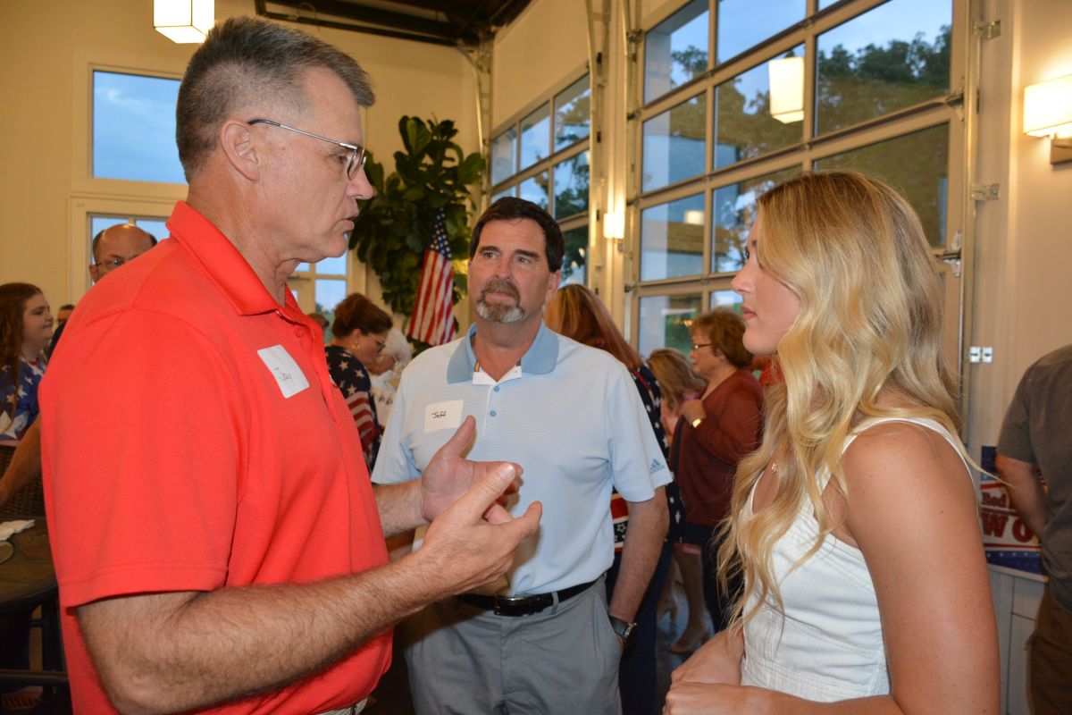 Tennessee State Representative Jay Reedy, State Representative Jeff Burkhart and Riley Gaines Barker at the Red River Republican Women’s Annual Wine Tasting Fundraiser at Ruby Cora on Jul. 28, 2023. (Lee Erwin)