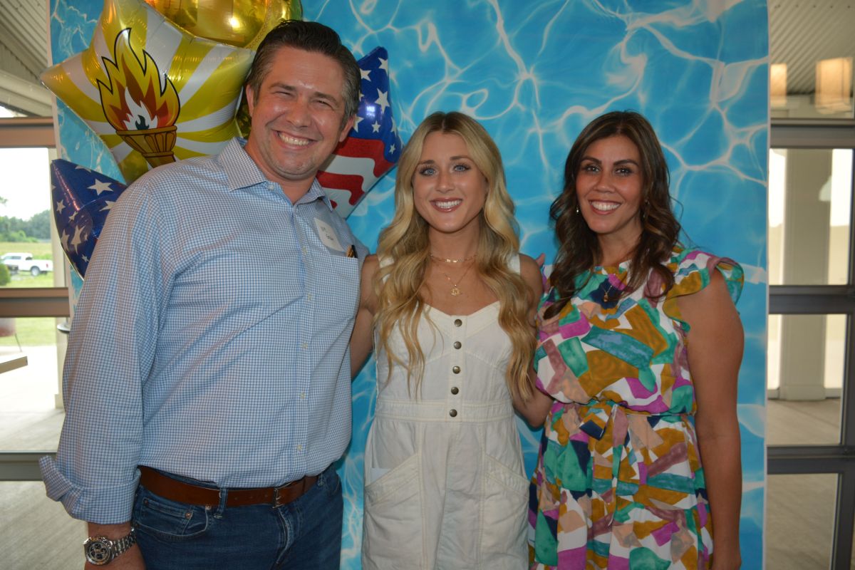Montgomery County Mayor Wes Golden, Riley Gaines Barker, & Sara Golden at the Red River Republican Women’s Annual Wine Tasting Fundraiser at Ruby Cora on Jul. 28, 2023. (Lee Erwin)