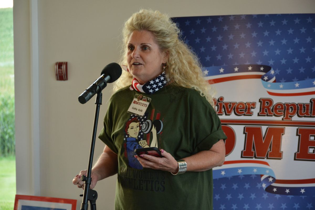 Cathy Kolb at the Red River Republican Women’s Annual Wine Tasting Fundraiser at Ruby Cora on Jul. 28, 2023. (Lee Erwin)