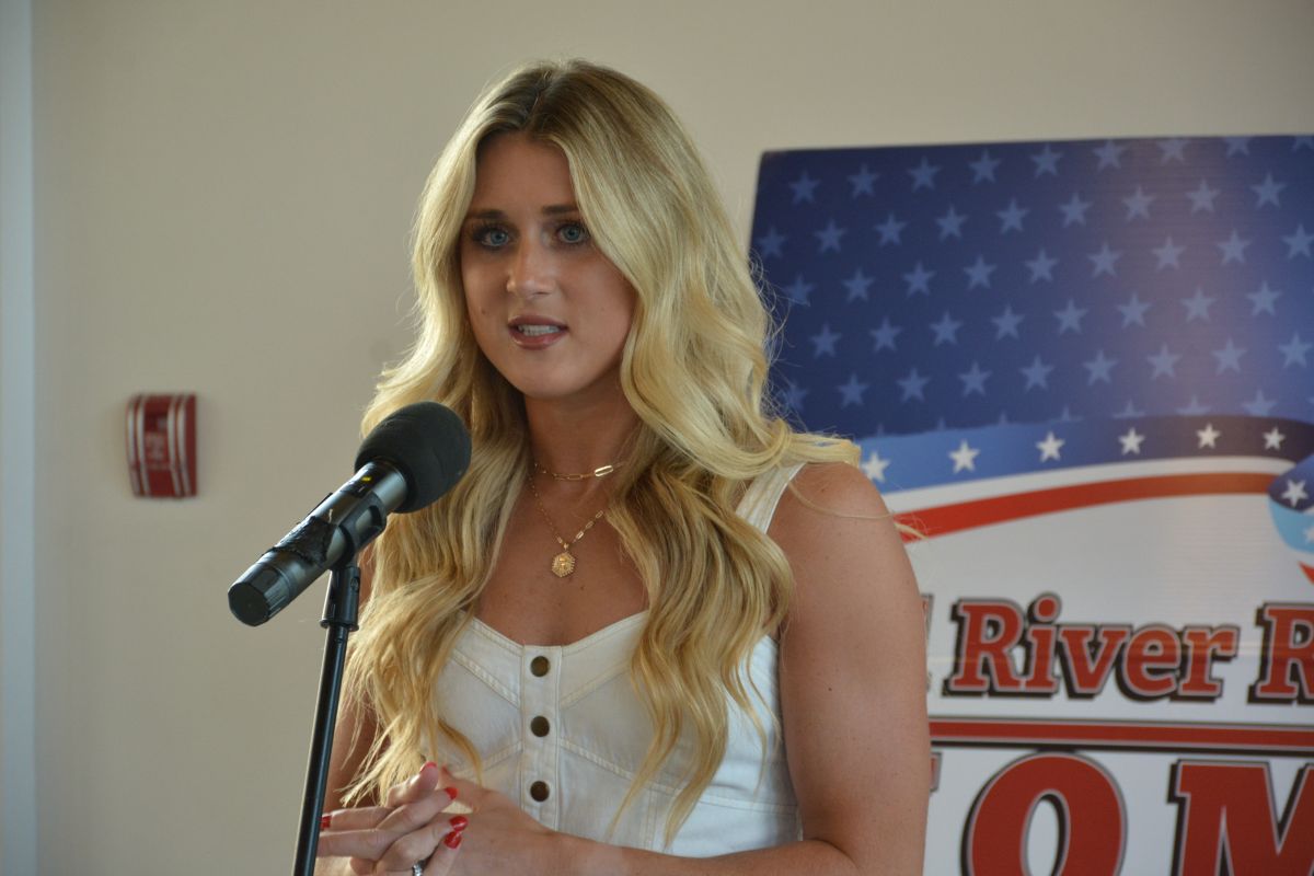 Keynote speaker former All-American Swimmer, Riley Gaines Barker, at the Red River Republican Women’s Annual Wine Tasting Fundraiser at Ruby Cora on Jul. 28, 2023. (Lee Erwin)