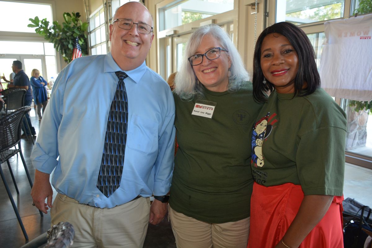 Pastor Tommy Vallejos, Diana Arrington, & Montgomery County Mayor Wes Golden at the Red River Republican Women’s Annual Wine Tasting Fundraiser at Ruby Cora on Jul. 28, 2023. (Lee Erwin)