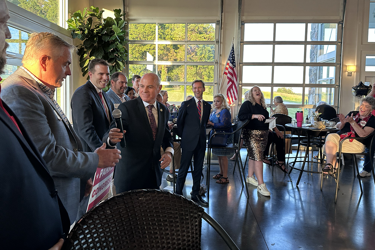 The theme of the night was “Golden Age of America” and a plethora of wines and hors d’oeuvres were offered to guests. A total of eight Republican candidates attended the event and spoke about why they are running for Congress. The Ruby Cora event center was packed with Republicans eager to hear what the candidates had to say.