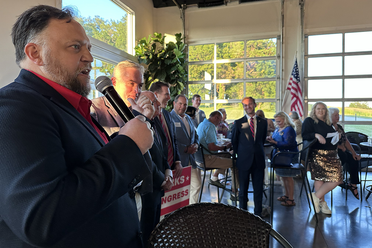 The first candidate to speak was Stewart Parks, who was pardoned by President Donald Trump for his role in the Jan. 6 riot at the Capitol. “I like to consider myself a true Trump candidate, because I was personally pardoned by Donald Trump,” said Parks.