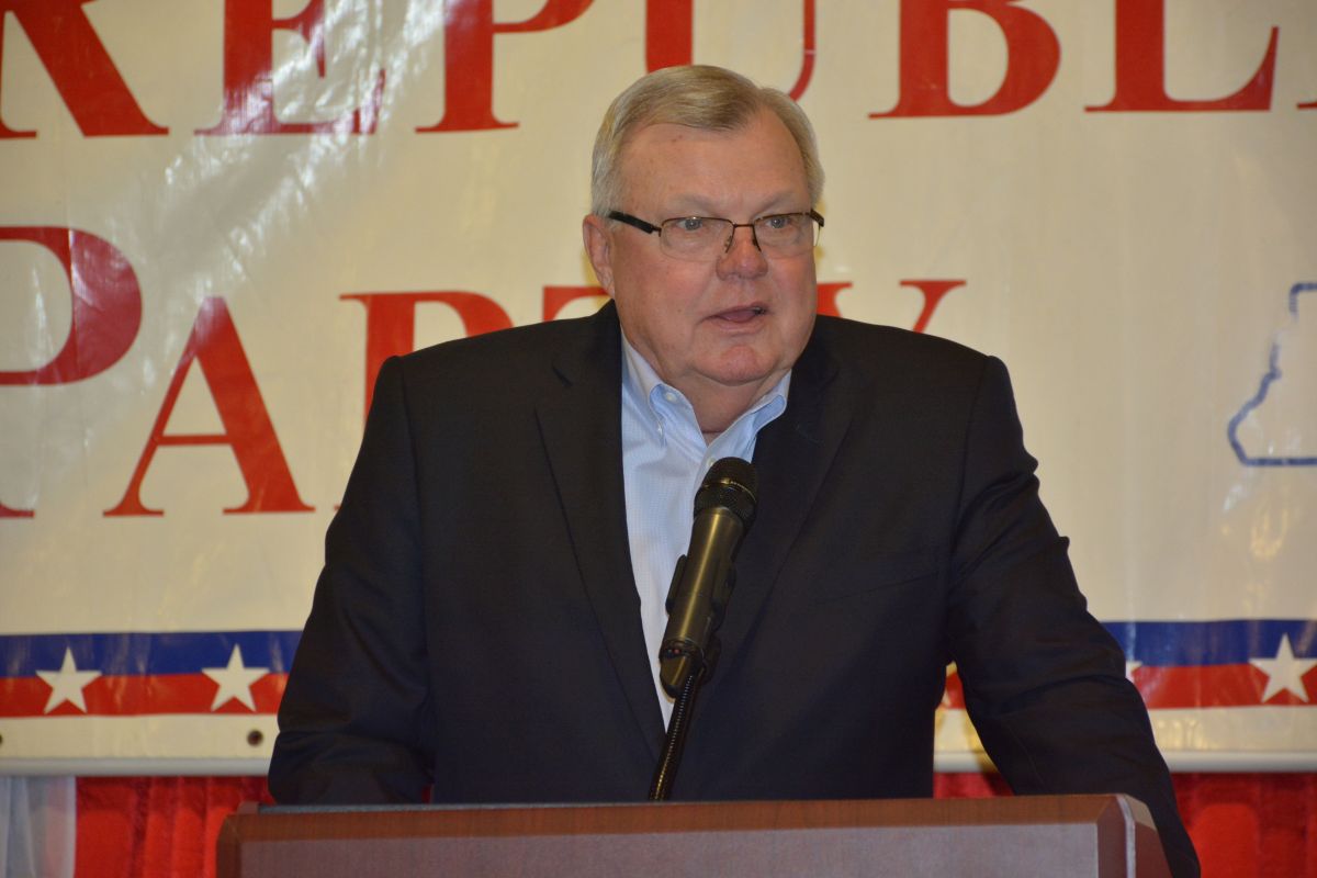 State Senator Bill Powers speaks at the Montgomery County Republican Party Lincoln Reagan Dinner, on Apr.1 2022. (Lee Erwin).
