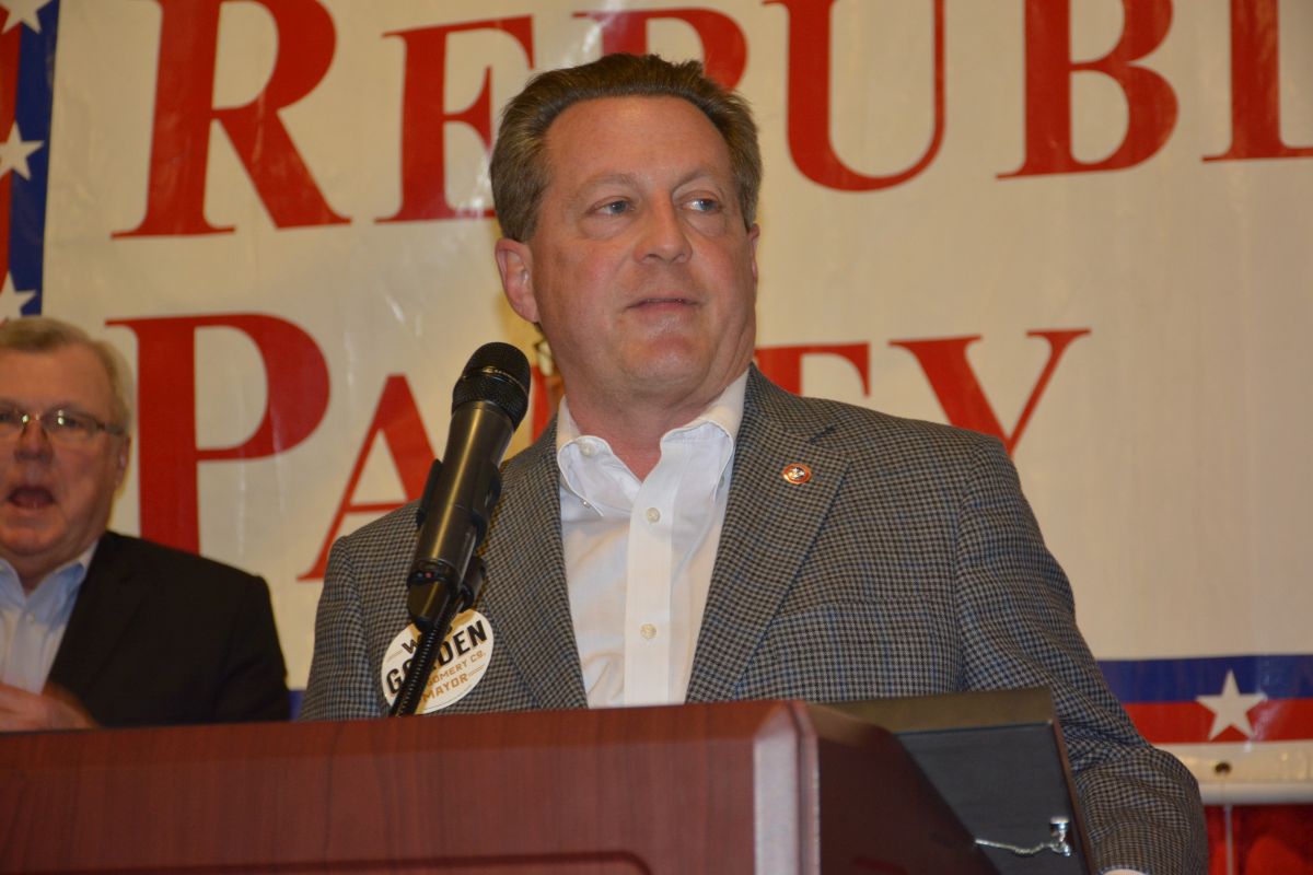 Montgomery County Commissioner John Gannon speaks at the Montgomery County Republican Party Lincoln Reagan Dinner, on Apr.1 2022. (Lee Erwin).