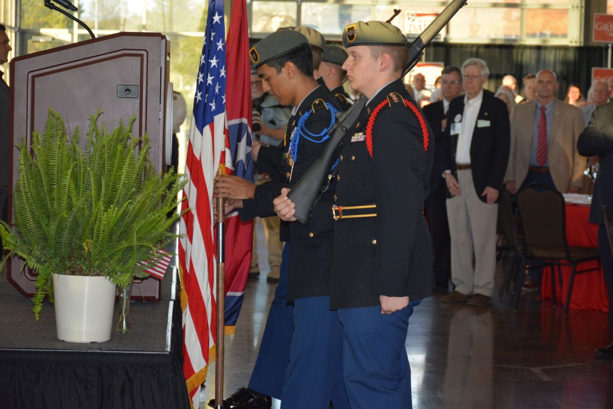Posting of the Colors by the NWHS JROTC at the Montgomery County Republican Party Lincoln Reagan Dinner, on Apr.1 2022. (Lee Erwin).