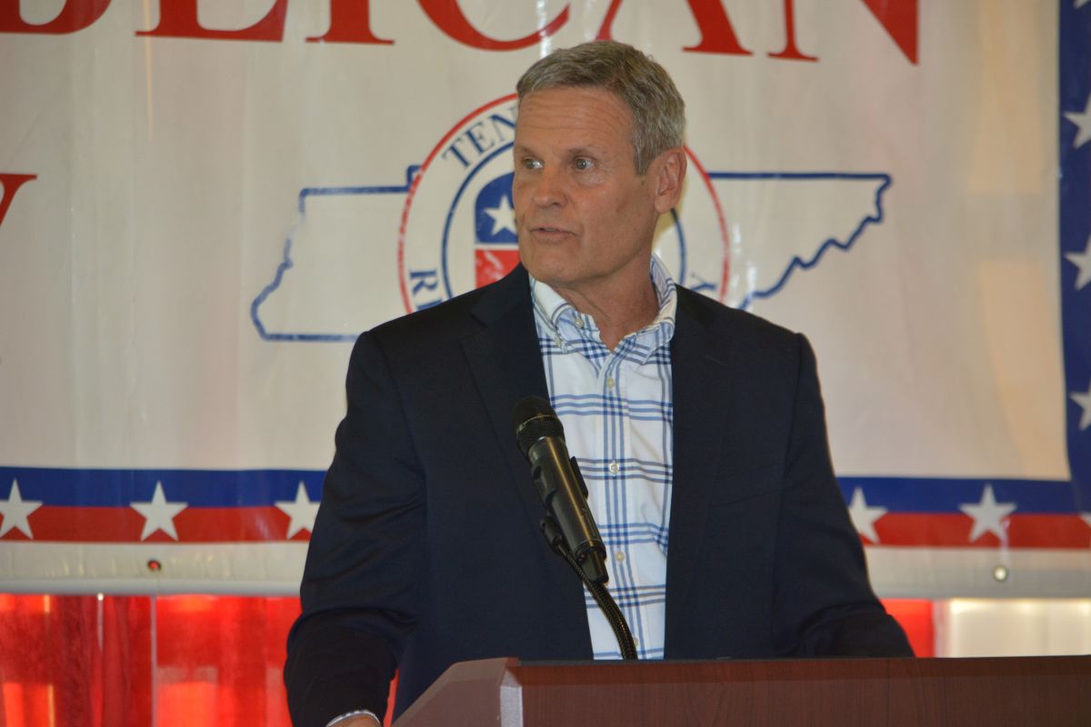 Tennessee Governor Bill Lee speaks at the Montgomery County Republican Party Lincoln Reagan Dinner, on Apr.1 2022. (Lee Erwin).