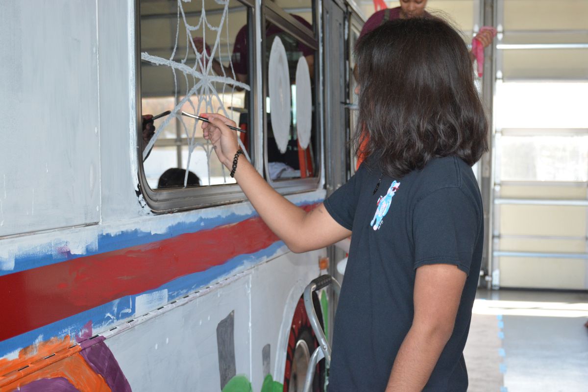 Just before Halloween, a group of Visual Arts II students from Northwest High School, took some time to share their talents by painting one of the CTS buses, turning it into the Spooky Special bus to celebrate Halloween this year.