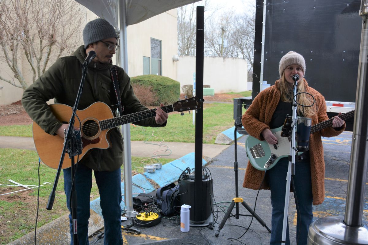 Michelle Hueffmeier and Jordan Burns at the groundbreaking of the new Riverview Square, at the site of the former Riverview Inn in downtown Clarksville on Jan. 25, 2023. (Lee Erwin)