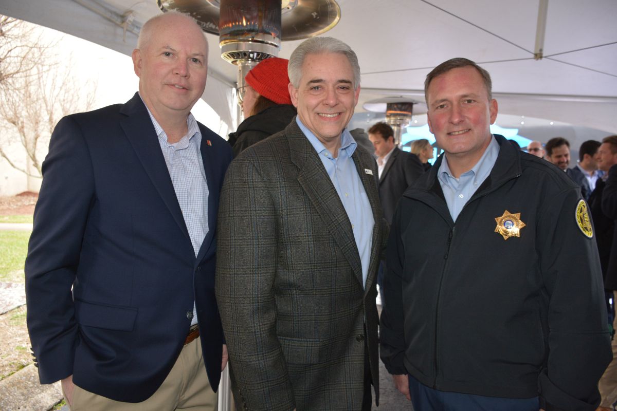 Tommy Bates, Jay Albertia, and Sheriff John Fuson, at the groundbreaking of the new Riverview Square, at the site of the former Riverview Inn in downtown Clarksville on Jan. 25, 2023. (Lee Erwin)