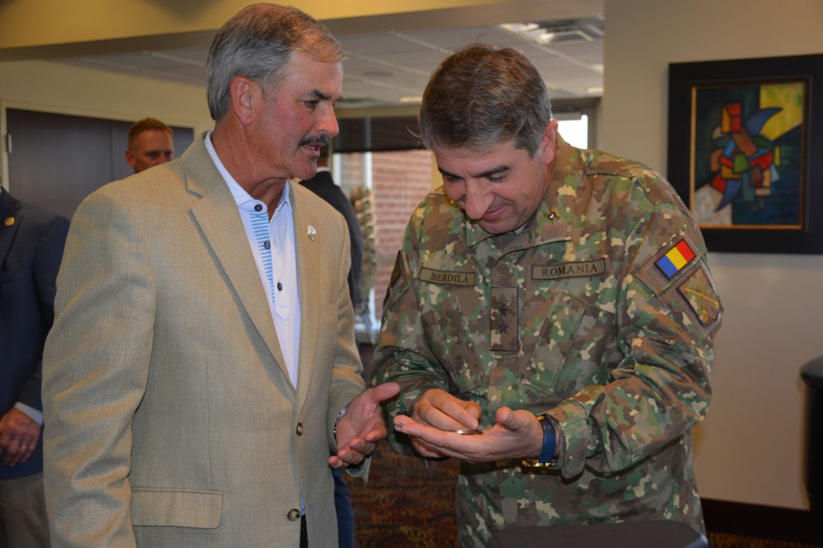 The visit of Major General Iulian Berdila, Chief of Romania Land Forces, and Major General JP McGee, Commander of the 101st Airborne Division (Air Assault) and Fort Campbell, at F&M Bank on, Oct. 14, 2022. (Lee Erwin).