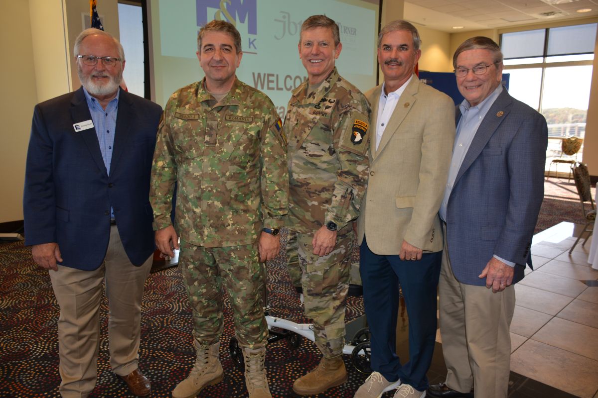 CLARKSVILLE, TN (CLARKSVILLE NOW) – At a community event Friday, F&M Bank and Jack B. Turner & Associates welcomed Major General Iulian Berdila, Chief of Romanian Land Forces, and Major General JP McGee, Commanding General of the 101st Airborne Division (Air Assault) and Fort Campbell.