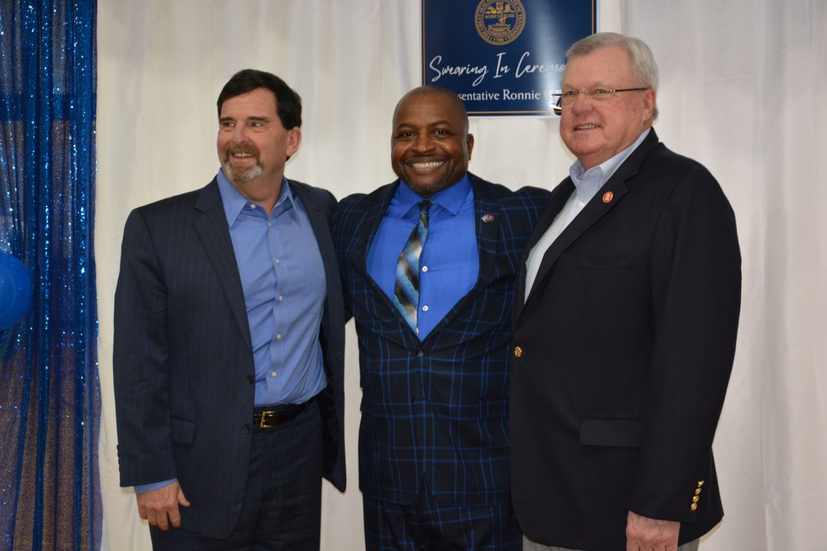 Tennessee State Representatives Jeff Burkhart, Ronnie Glynn, & Curtis Johnson, at the swearing-in ceremony for Tennessee State Representative for the 67th District, Ronnie Glynn at Burt Elementary School on Dec. 10, 2022. (Lee Erwin)