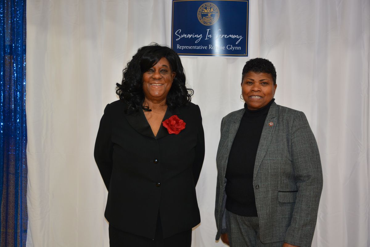 Merriel Bullock-Neal & Wanda Smith at the swearing-in ceremony of Tennessee Democratic State Representative for the 67th District, Ronnie Glynn at Burt Elementary School on Dec. 10, 2022. (Lee Erwin)