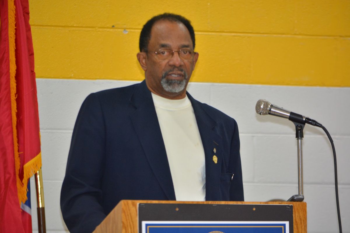 CMCSS school board member and local NAACP President Jimmie Garland, speaking at the swearing-in ceremony of Tennessee Democratic State Representative for the 67th District, Ronnie Glynn at Burt Elementary School on Dec. 10, 2022. (Lee Erwin)