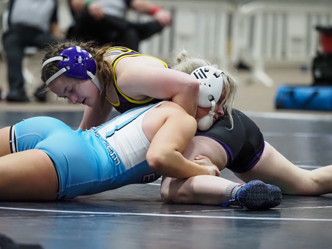 The girls bracket only consisted of four teams – Rossview, Clarksville, Cleveland, and Gibbs – and therefore started with the semifinal. Rossview steamrolled Gibbs, 54-16, with wins (eight pins and one forfeit) by Alyssa Adamo, Irelynn Laurin, Zahara Williams, Ava Teasley, Adelynn Bess, Mariana Bowen, Evelin Ochoa, Analise Jetter, and Stitch Nikolao.