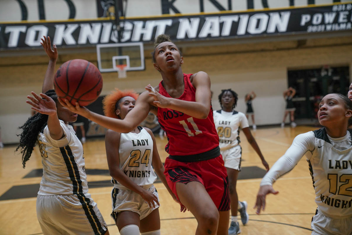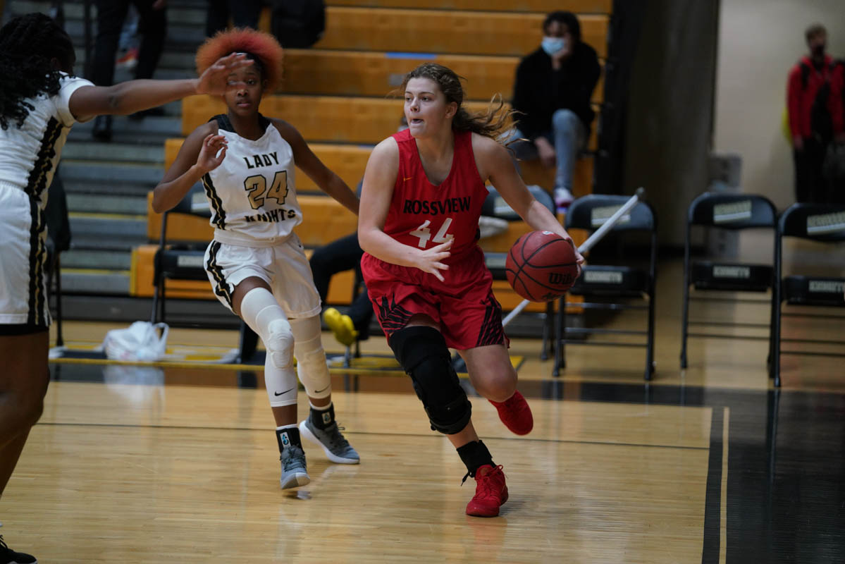 With only six players active, Lady Knights assistant coach Tiffany Leavell was forced to play her starters for the entirety of the contest. Rossview won 50-26.