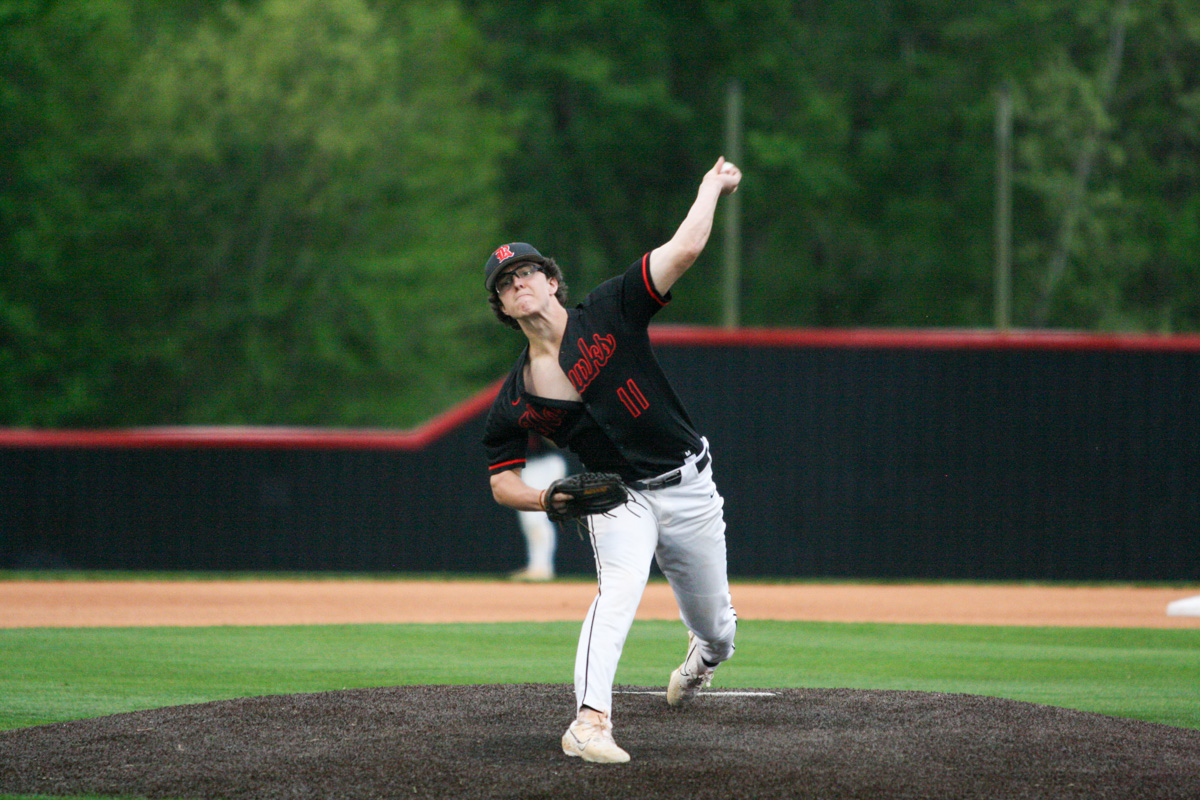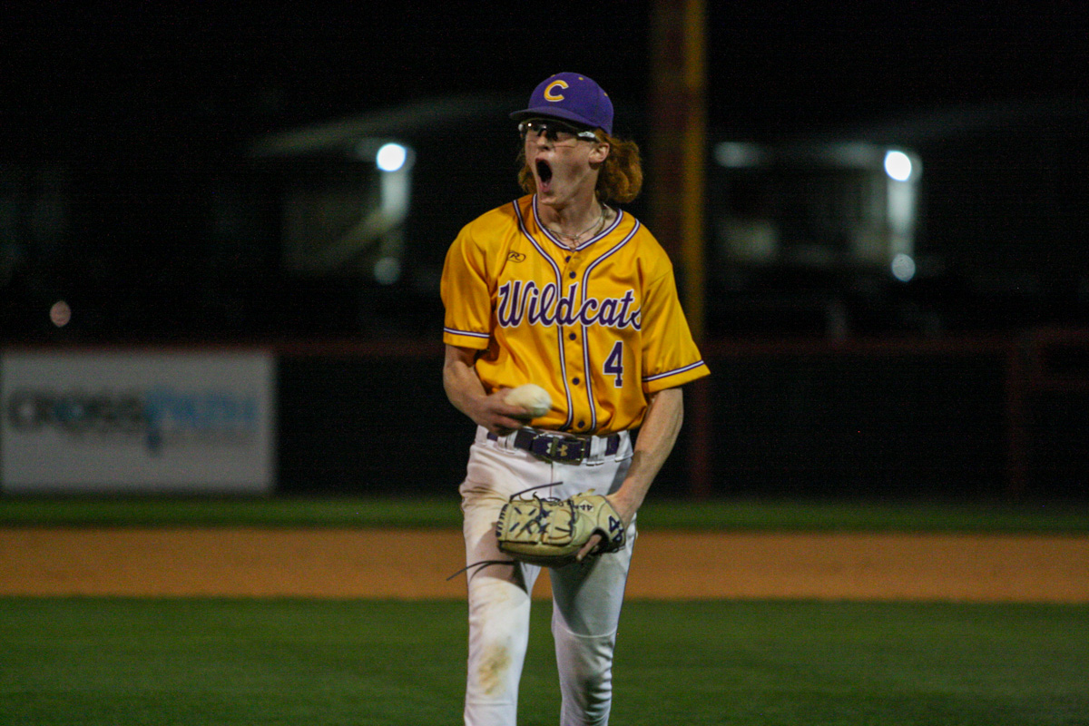 To begin the game, left-handed starting pitchers Brodie Prairie (RHS) and Porter Murff (CHS) were dueling on the mound. Both kept their teams scoreless through two innings of work, until the Wildcats broke through in the top of the third when they scored four runs. Clarksville High head coach Brian Hetland knew how important it was to seize momentum early in the game.
