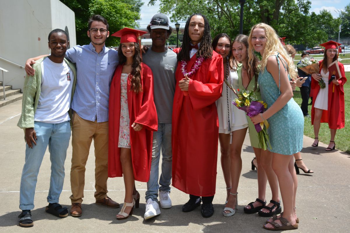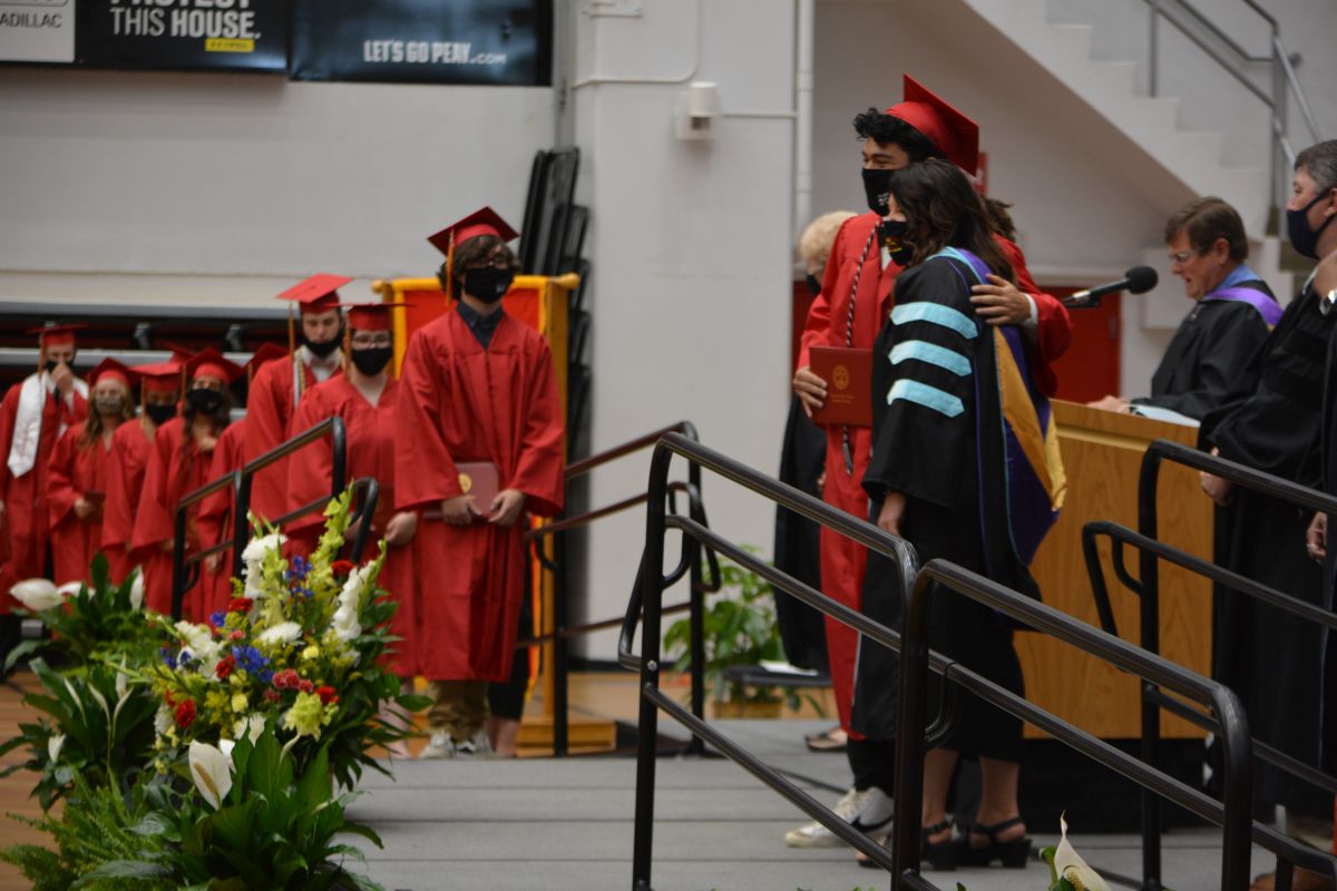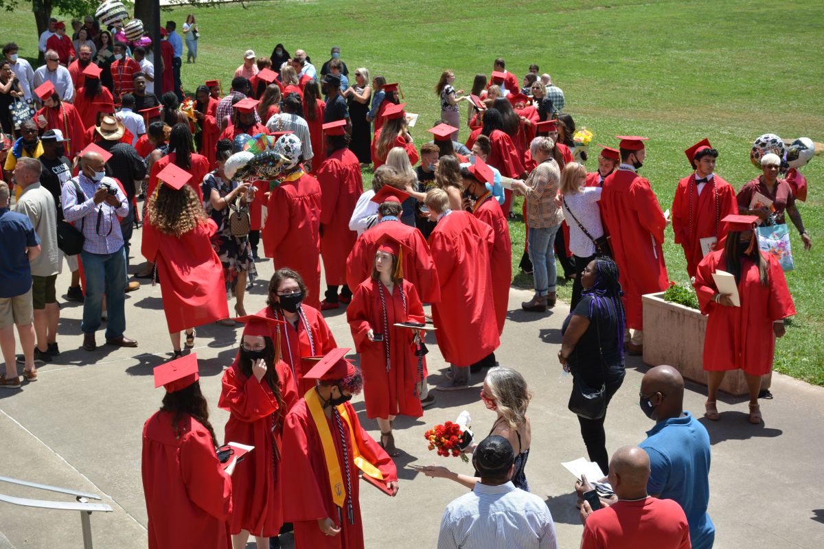 Following the announcement of their names and their walk across the stage, the graduates moved outside the Dunn Center to waiting family and friends.