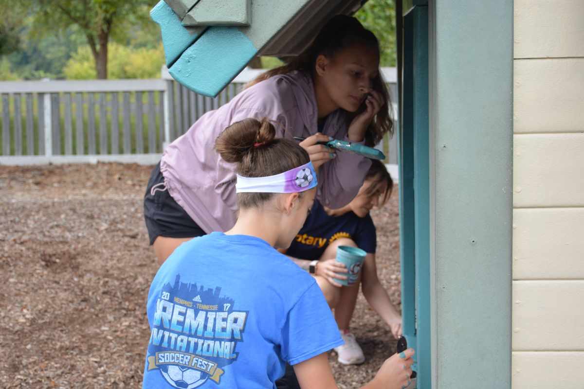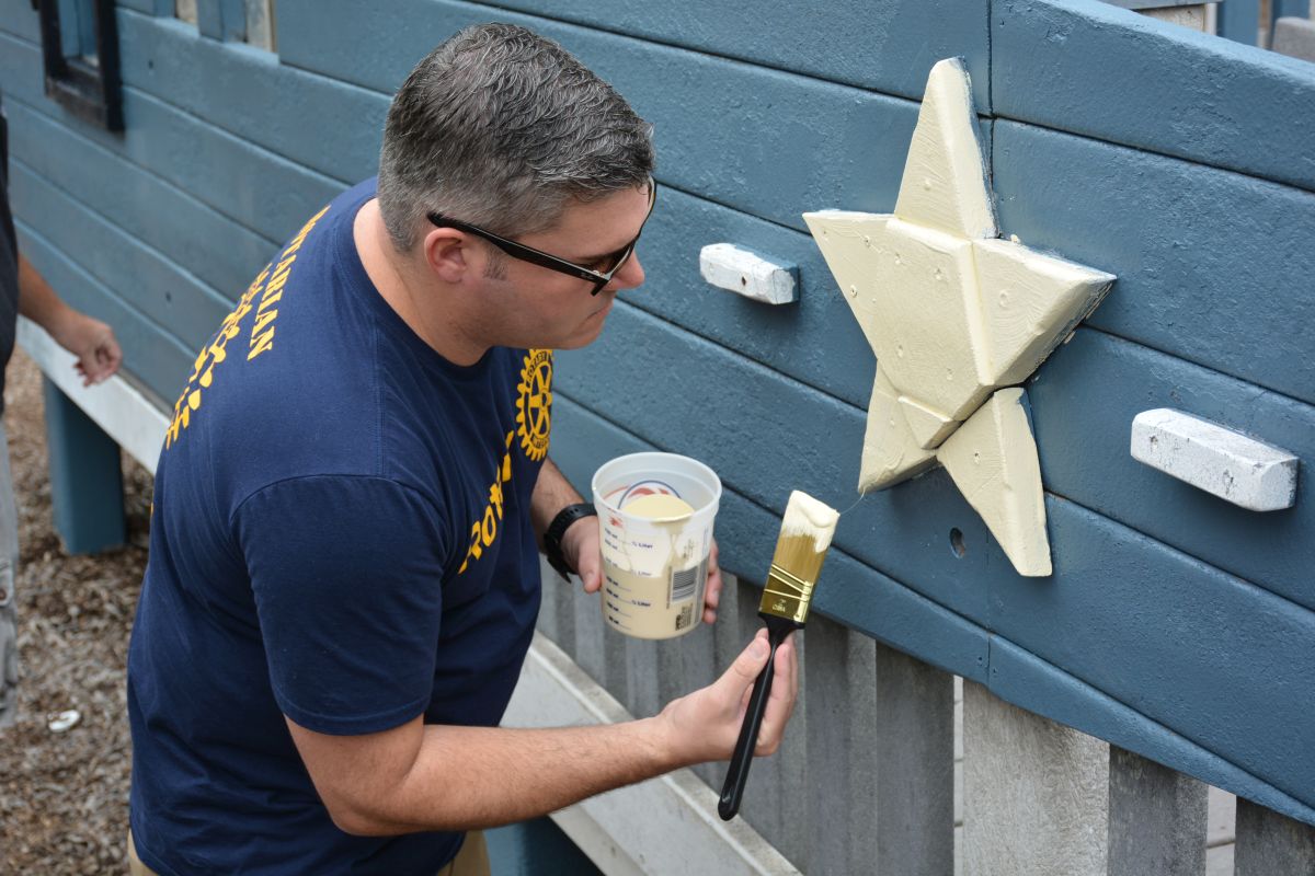 The Clarksville Rotary Club led the project and were joined by members of the Sunrise and Sunset Rotary Clubs. All of the Rotarians were working but also having fun as they painted and helped brighten up the facility for families and children.