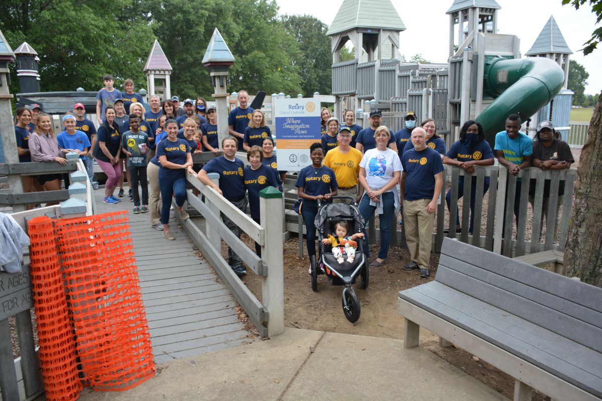 CLARKSVILLE, Tenn. (CLARKSVILLENOW) – Close to 60 volunteers, members of the Rotary Clubs of Clarksville, came together Saturday, September 26 at the Where Imagination Flows Community Built Playground at Liberty Park to make some needed improvements.