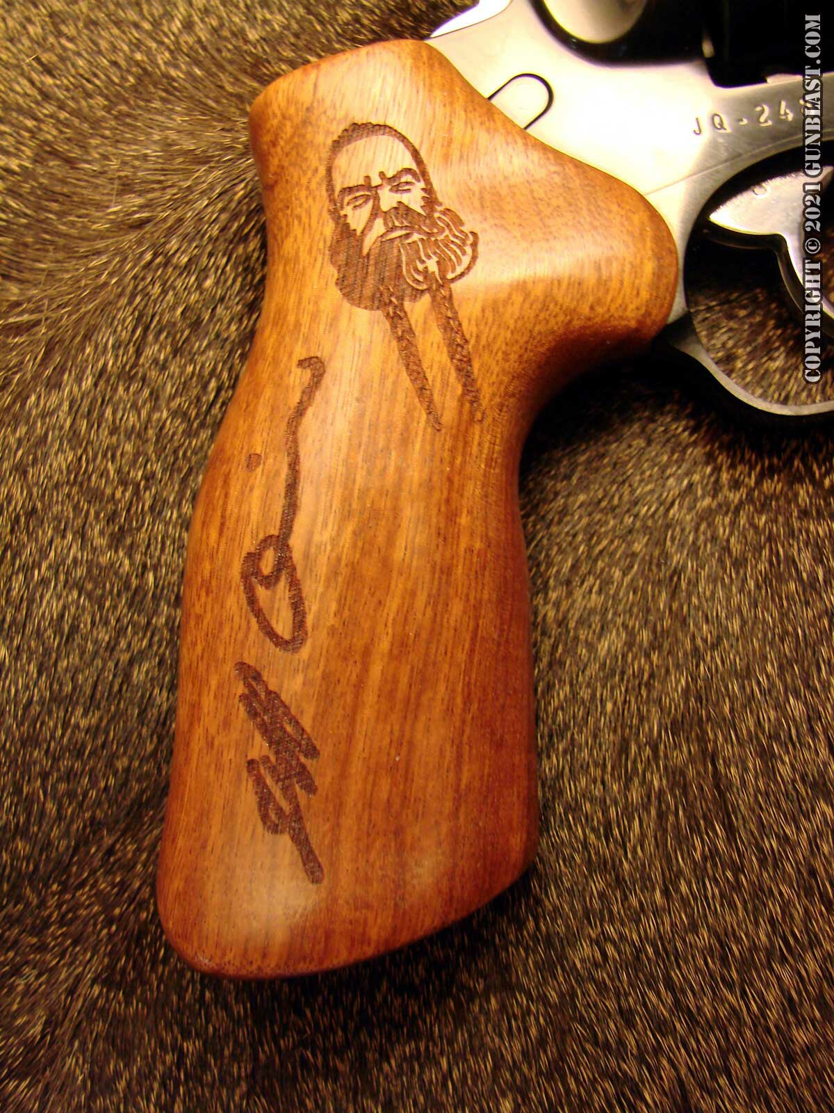 The GP100 Memorial Revolver from Ruger is a limited edition, .44 special revolver with a 4-inch barrel and five-shot, unfluted cylinder. The revolver sports a classic look with a dark blue finish and hardwood grip. Engraved on the grip is Jeff Quinn’s signature and likeness, sporting his iconic double-braided beard.