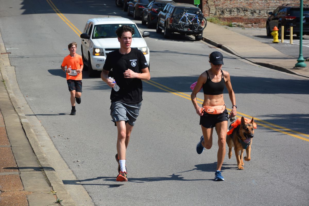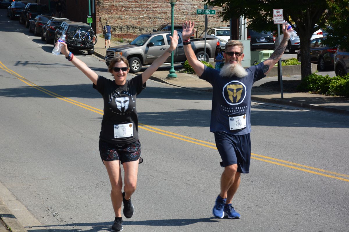 Clarksville Mayor Joe Pitts, First Lady Cindy Pitts and Mark Riggins, participating in the 6th Annual 5K Run for C.O.P.S. through downtown Clarksville with the Clarksville Police Department on May 14, 2022. (Lee Erwin)