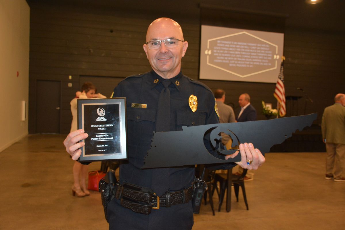 Community Hero Award given to the Clarksville Police Department at the Soldiers and Families Embraced (SAFE) fundraising breakfast on, Thur. Mar. 10. (Lee Erwin).