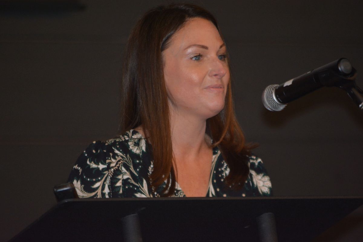 Jodi McCullah speaks to guests at the Soldiers and Families Embraced (SAFE) fundraising breakfast on, Thur. Mar. 10. (Lee Erwin).
